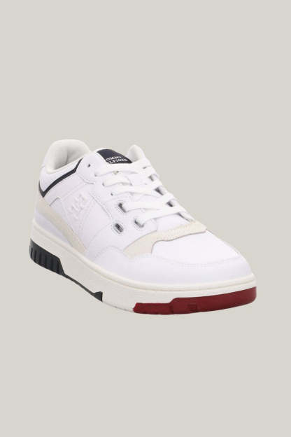 These low-top basketball trainers by Tommy Hilfiger are both stylish and versatile. The mixed texture panels and colour-pop design provide a fresh feel, while the easy-to-style look makes them a great addition to any outfit. With these trainers, you'll be able to elevate your style effortlessly.