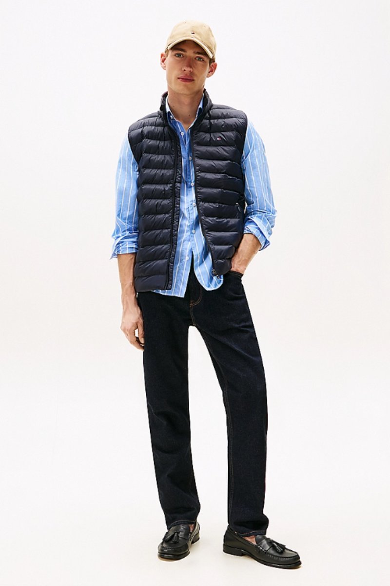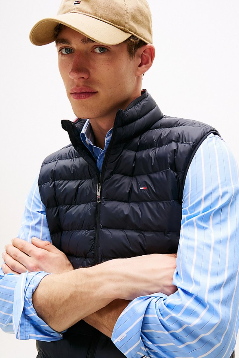 The Tommy Hilfiger Core Packable Vest is a stylish and versatile quilted gilet that offers both fashion and comfort. With the ability to easily pack away, it's the perfect choice for unpredictable weather. Wear it over a or and complete your look with a pair of .