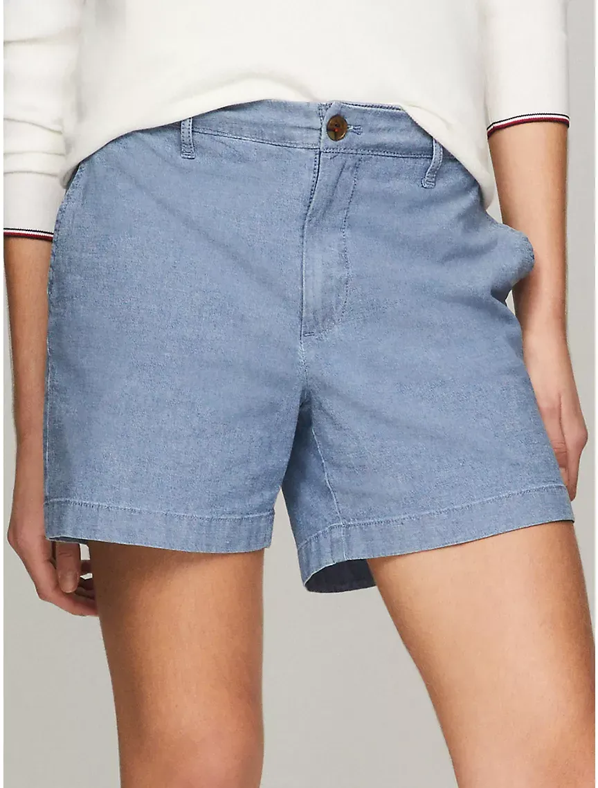 - Medium Wash (Chambray): 98% cotton, 2% elastane.