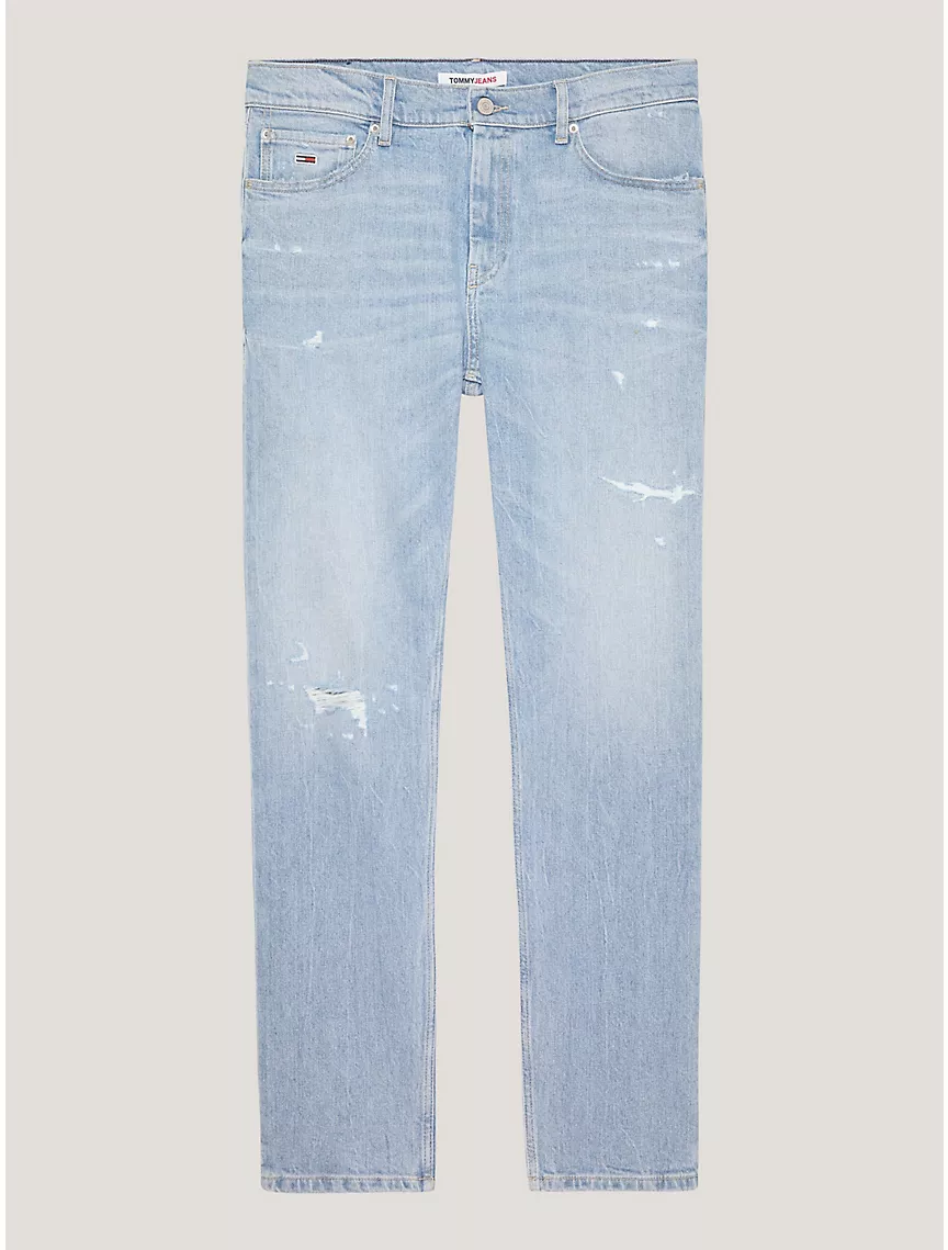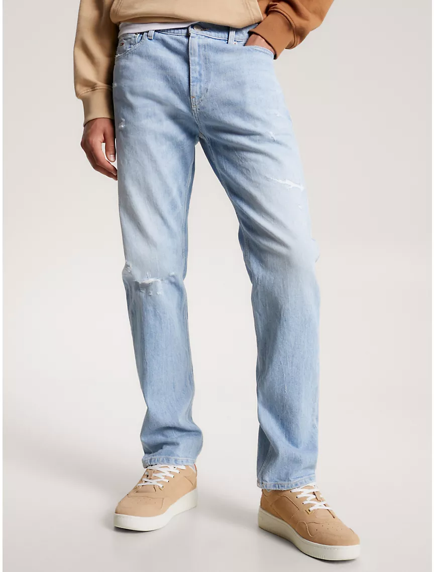 - 5-pocket style, strategic distressings.