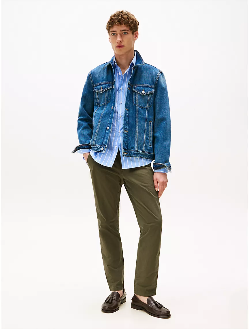 - 77% cotton, 20% pre-consumer recycled cotton, 3% elastane.