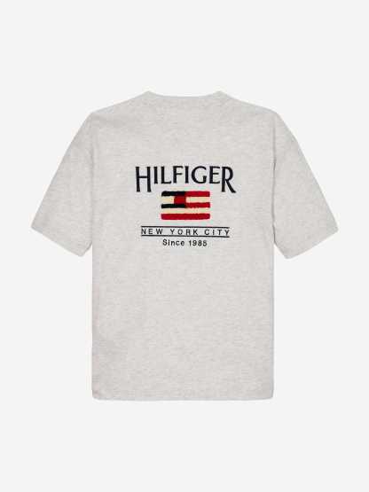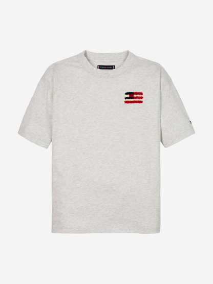 Boys Hilfiger Flag Embroidered T-Shirt in Grey