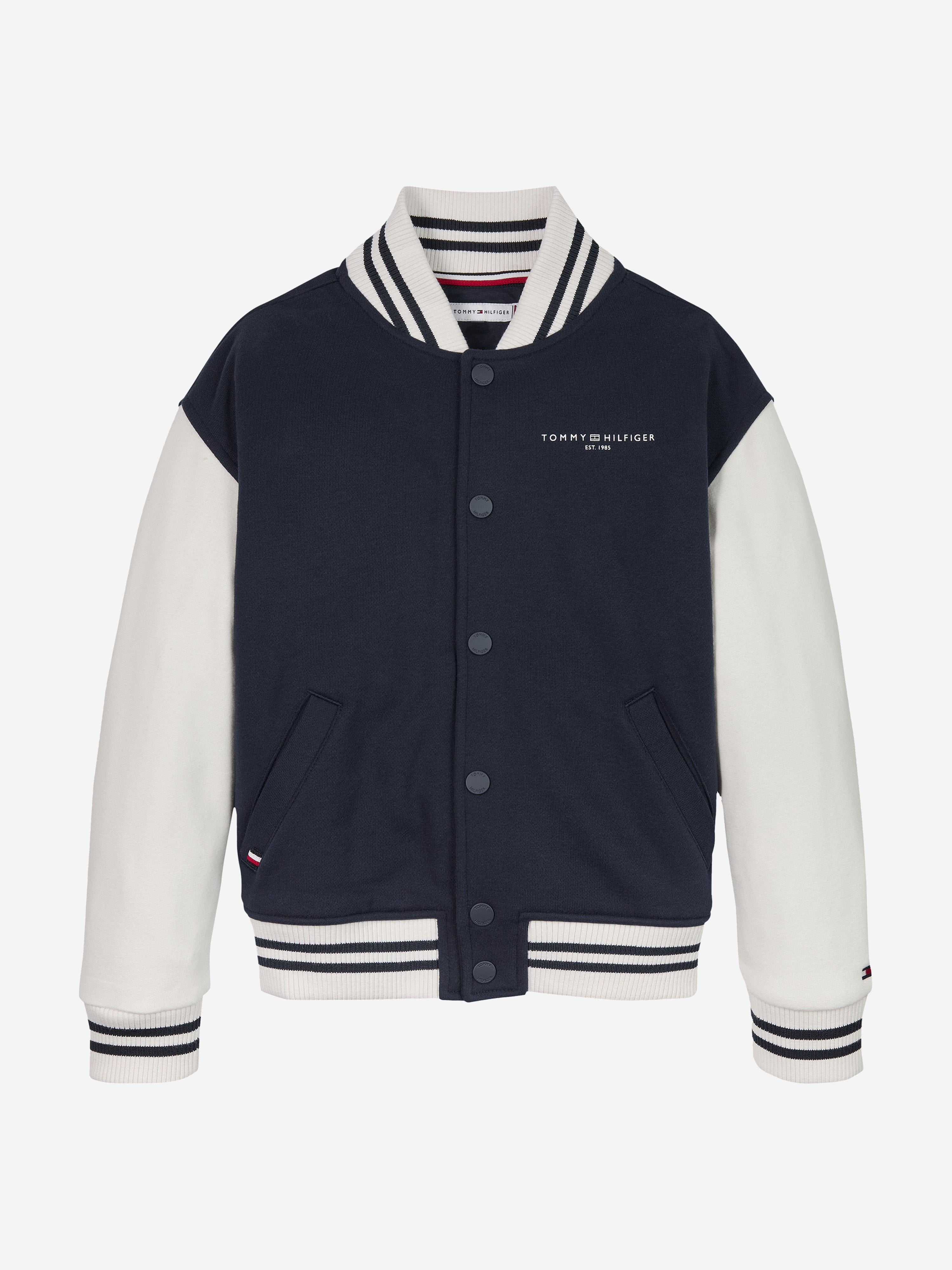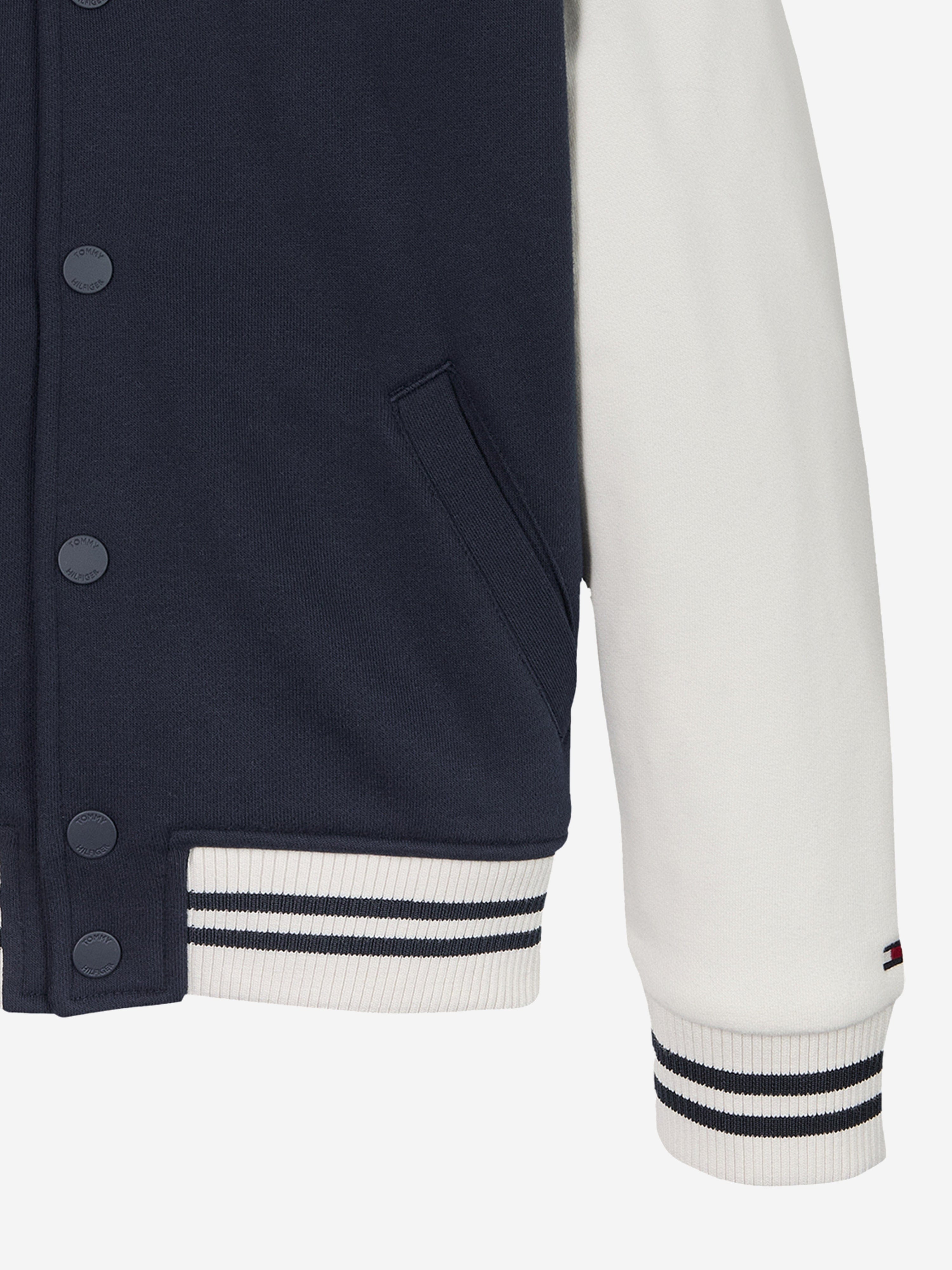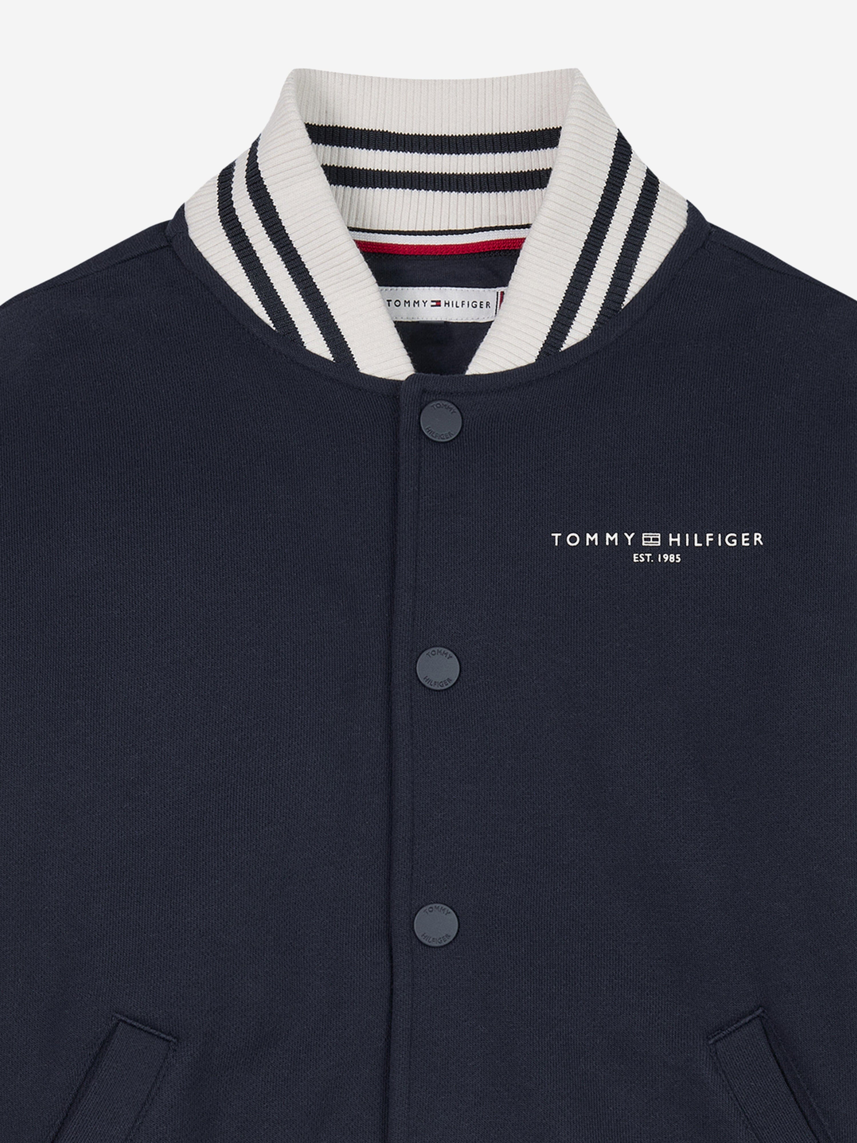 Introducing the Boys Mini Corp Logo Bomber Jacket in Navy by Tommy Hilfiger, an essential addition to any discerning young man's wardrobe for SS2025. This designer piece melds quintessential elegance with practicality. Key features include: