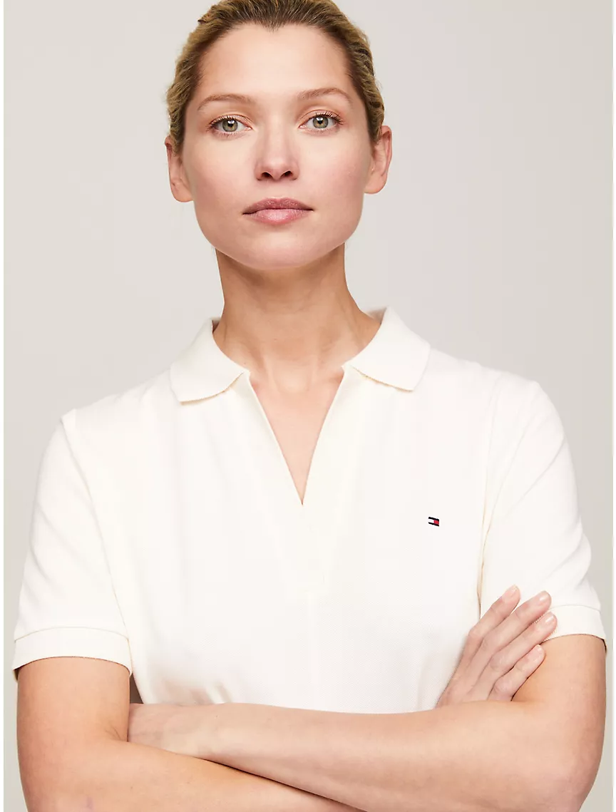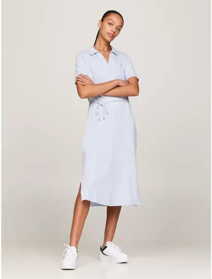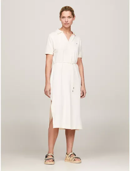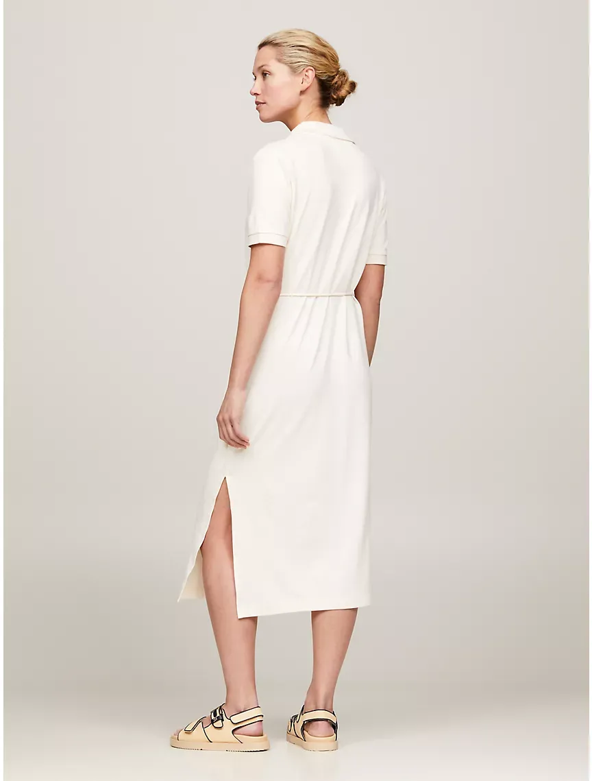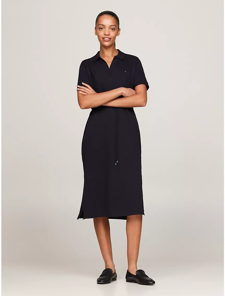 Open Placket Midi Polo Dress