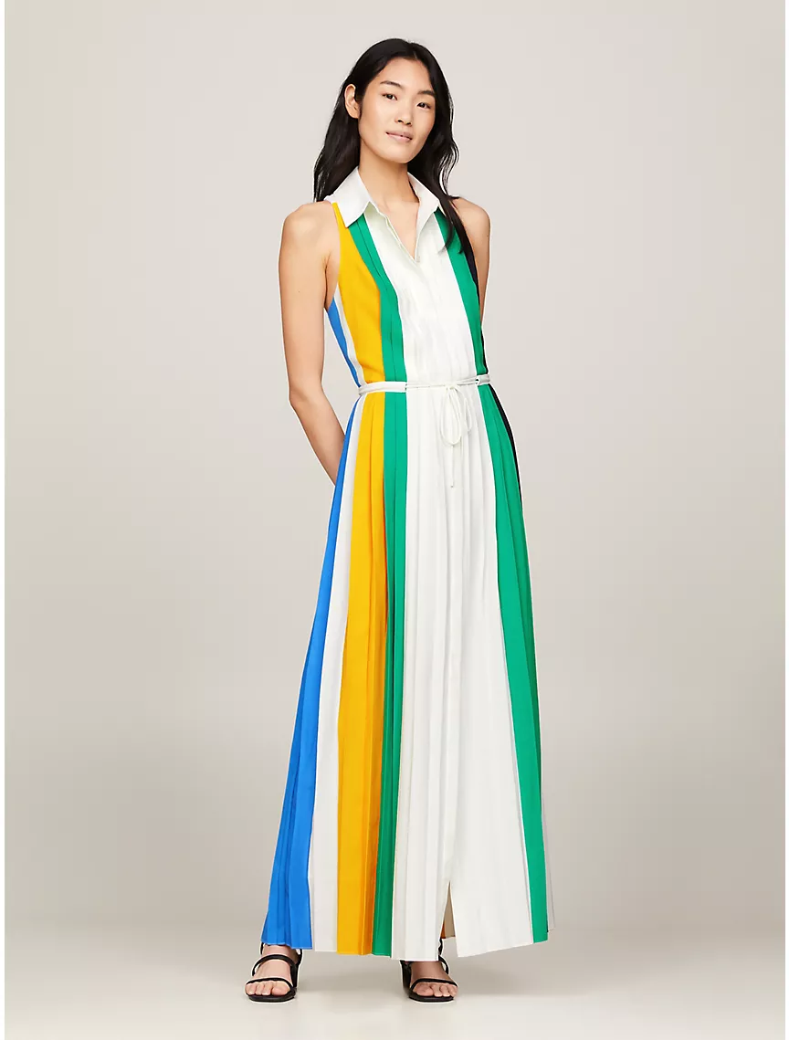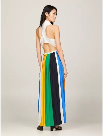 Pleated Colorblock Maxi Dress