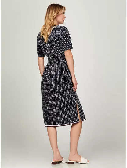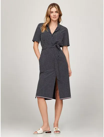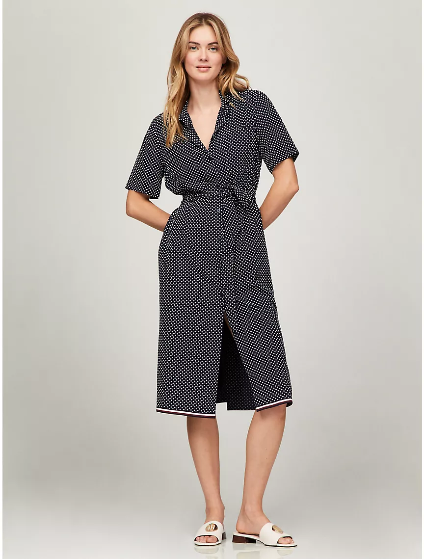 Short-Sleeve Polka Dot Midi Shirtdress