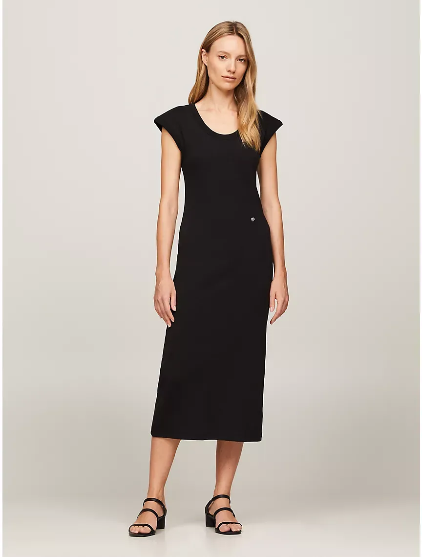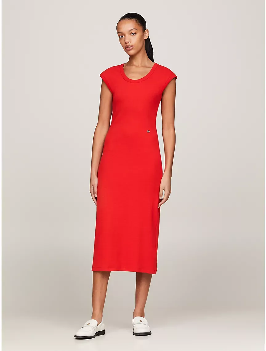 Slim Fit Ribbed Stretch Midi Dress