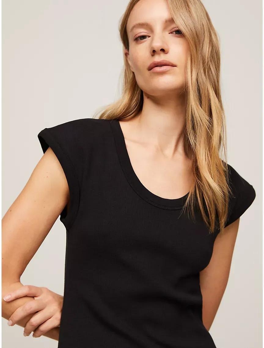 - Model is approximately 5'10" and wears a size S.