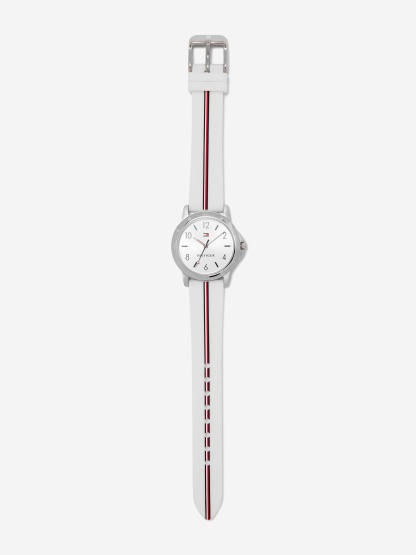 Tottgmmy Hilfigttger Girls Logo Strap Watch in White 32mm (One Size)