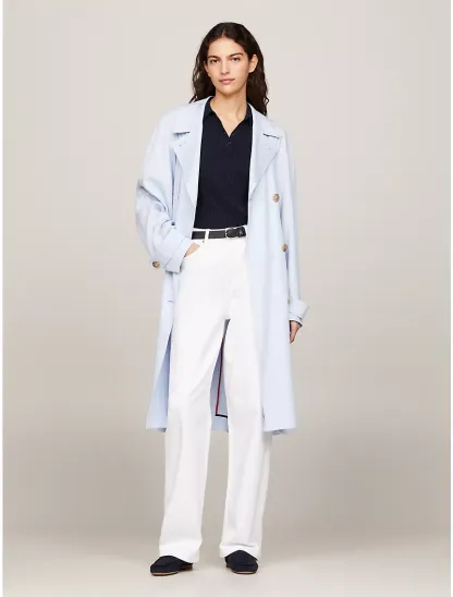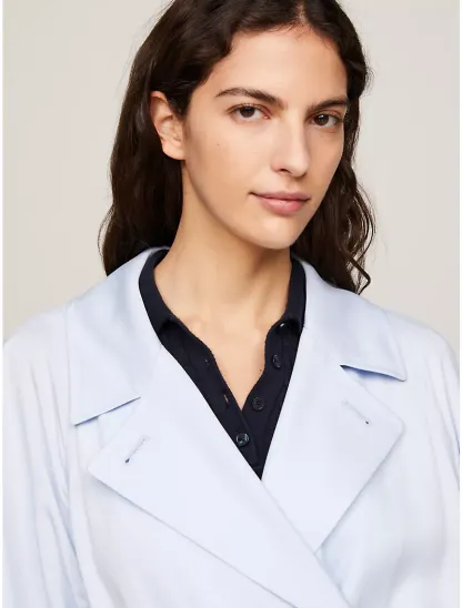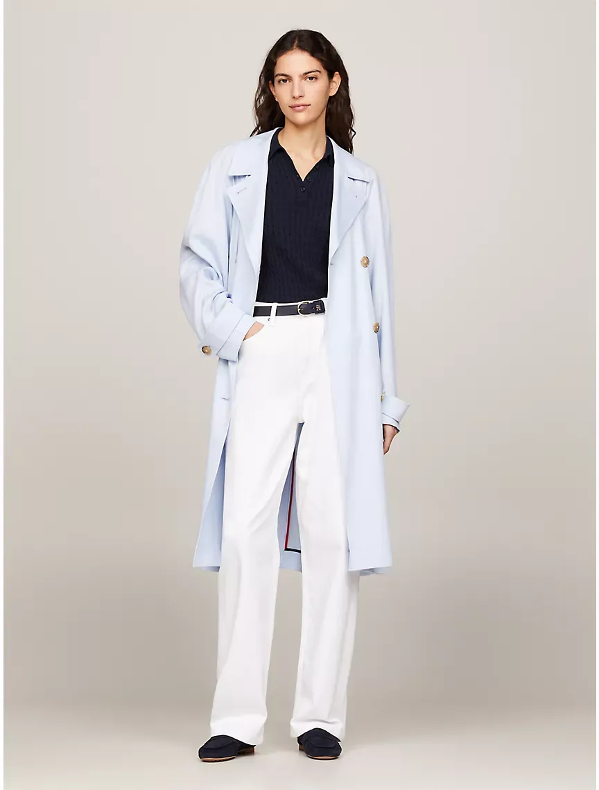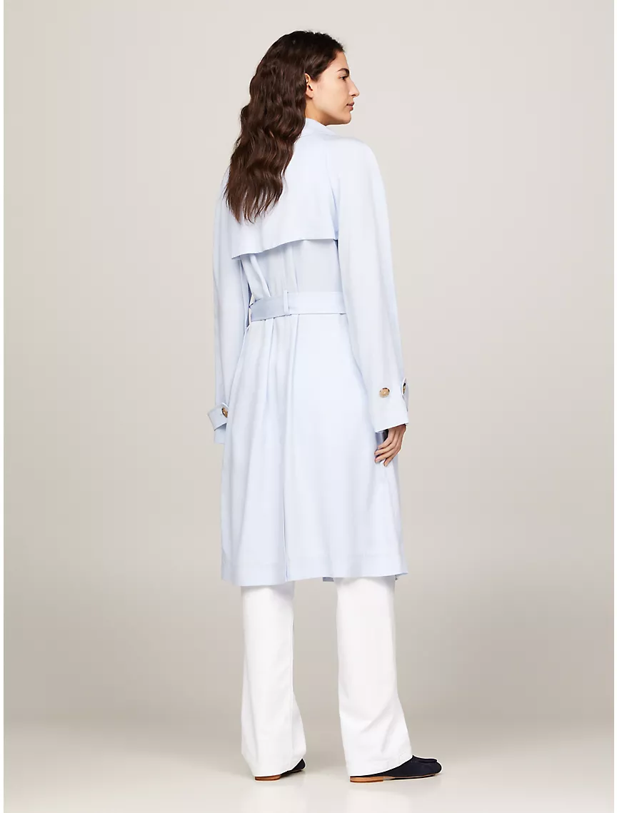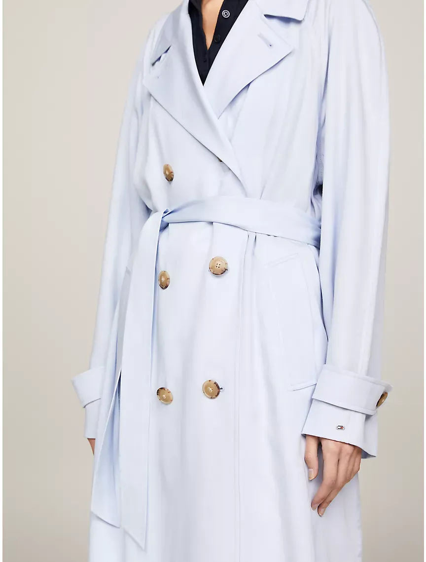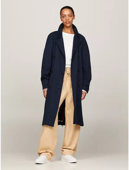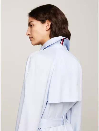- Button closure, self belt, two front welt pockets, raglan sleeves, belted cuffs, storm flap.
