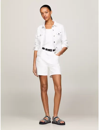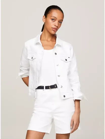 - Button closure, chest pockets, single-button cuffs, semi-spread collar, microflag at chest pocket.