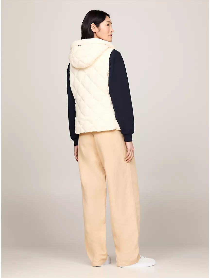 Water Repellant Quilted Down Hooded Vest