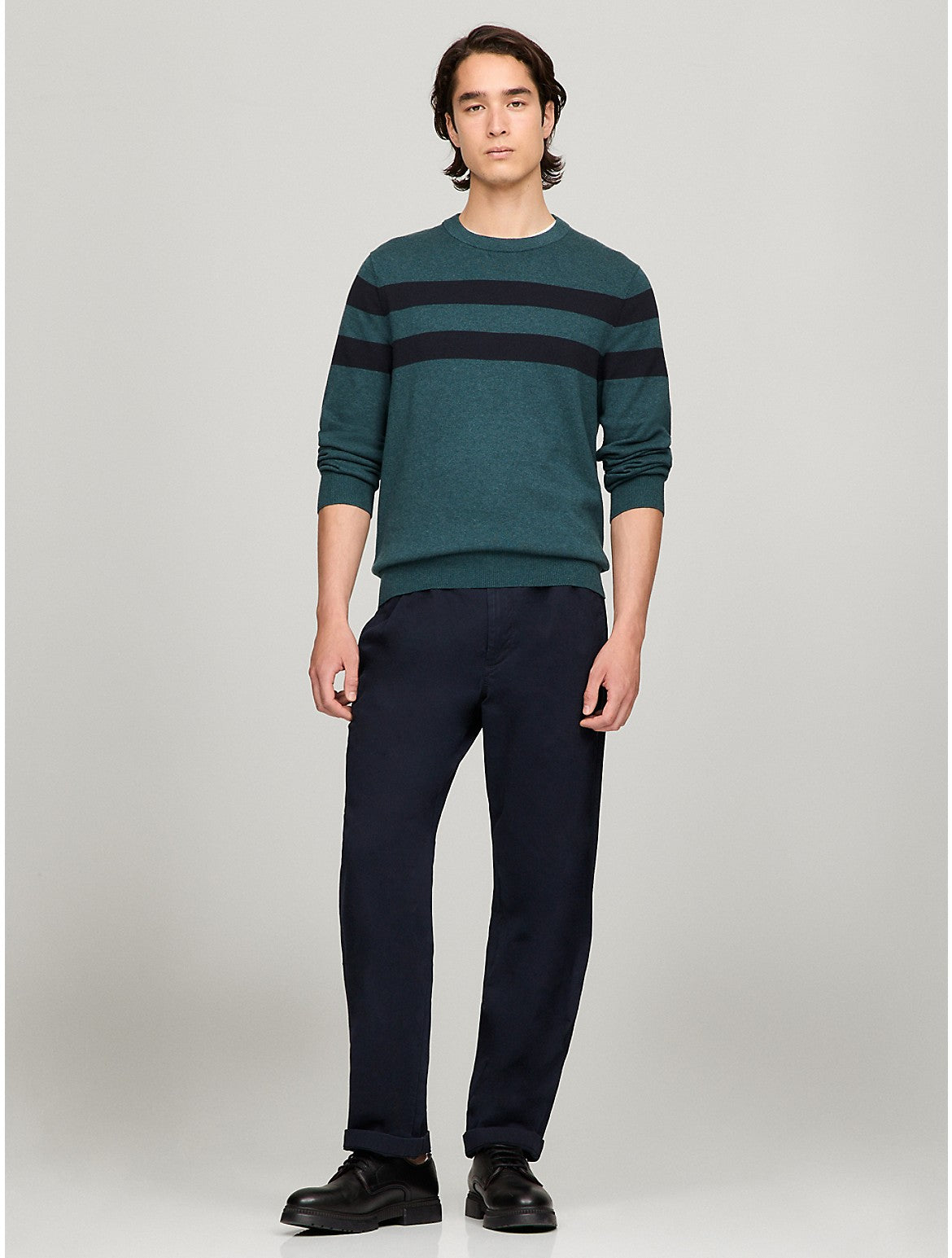 Tottgmmy Hilfigttger Men's Double Stripe Crewneck Sweater