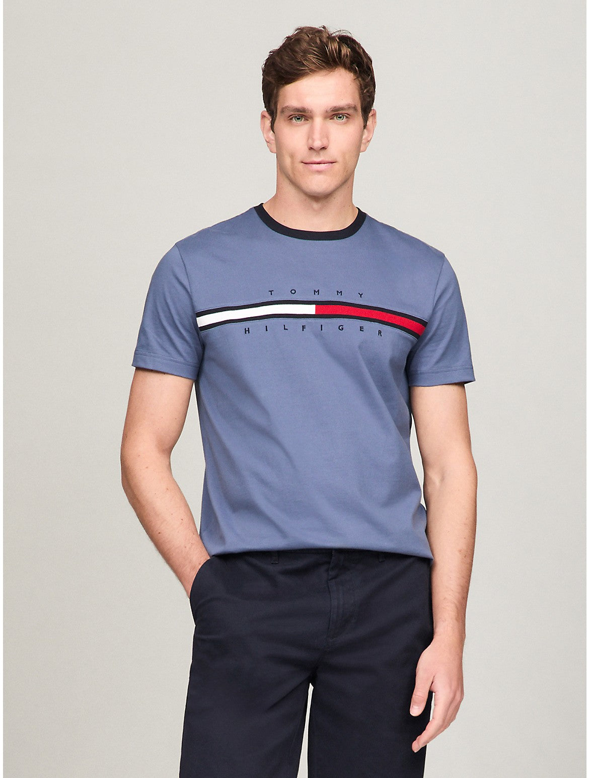Tommy Hilfiger men's T-shirt. Made from lightweight cotton jersey, known for its breathability and stretch, our comfortable crewneck tee is cut in an easy fit and finished with our embroidered flag logo. Material - 100% Regenerative Cotton.