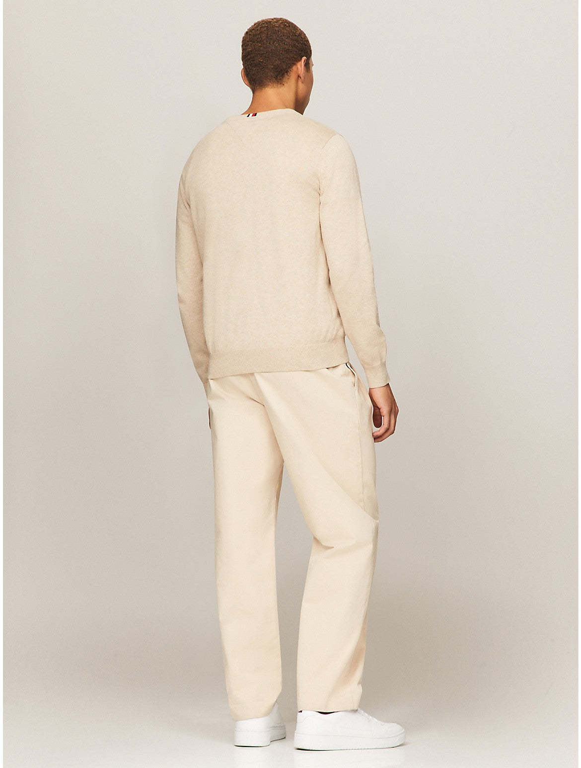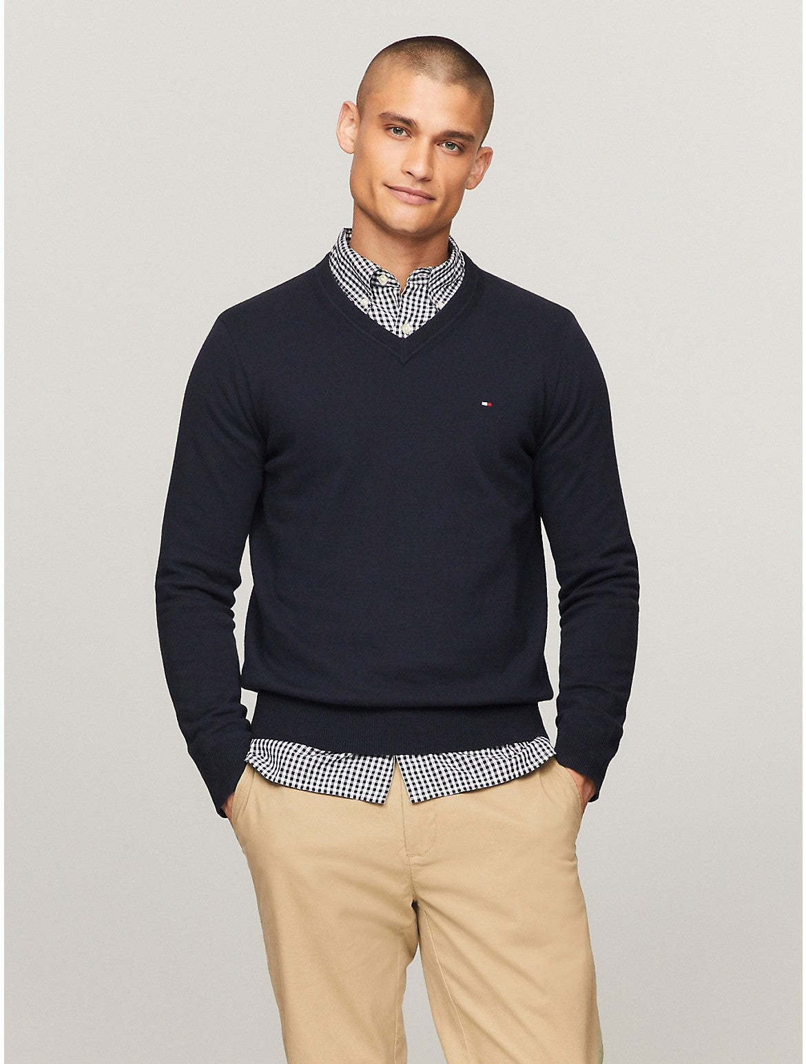 Tommy Hilfiger men's sweater. Made from soft cotton in a smooth jersey stitch, this V-neck is the perfect layer. It's complete with a rib-knit hem and cuffs and touches of subtle branding throughout. Material - 100% Better Cotton Initiative.