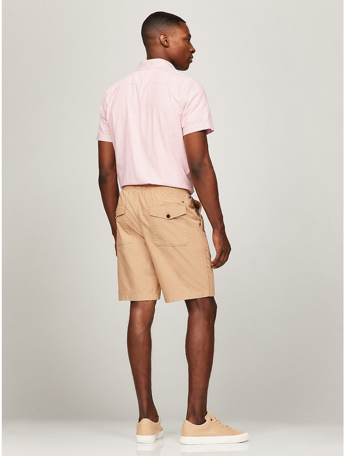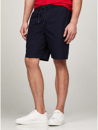Tommy Hilfiger men's short. Designed with comfort in mind, these pull-on shorts are crafted from airy, paper-touch poplin, a fresh take on our favorite crisp cotton shirting fabric, reimagined with a more tailored structure for shorts. We added a contrast drawstring waist for an elevated, summer-ready spin on weekend wear. Material - 100% Better Cotton Initiative (bci) Cotton.