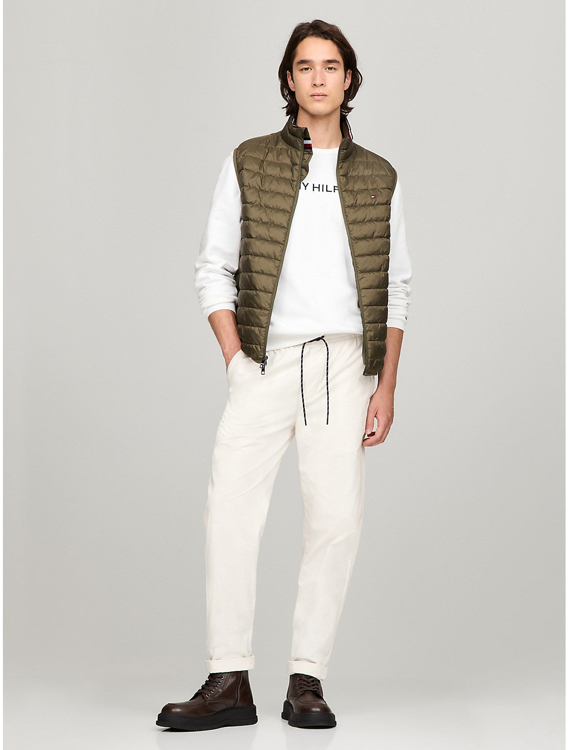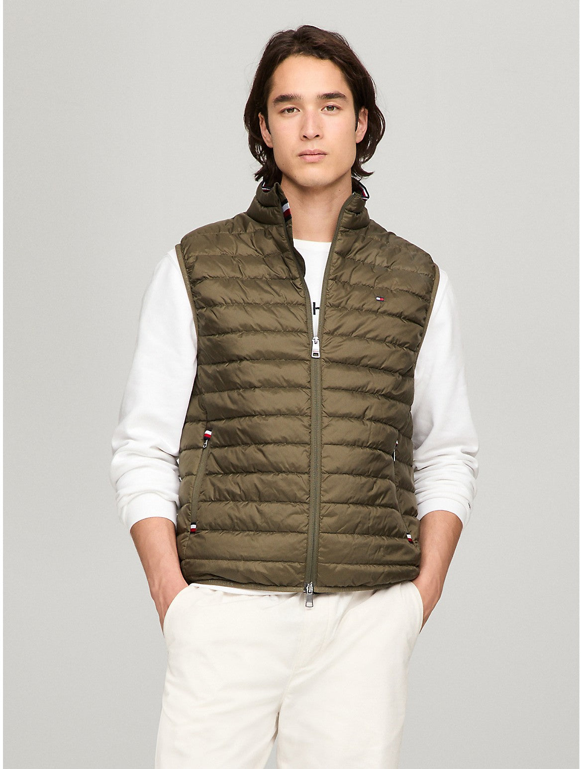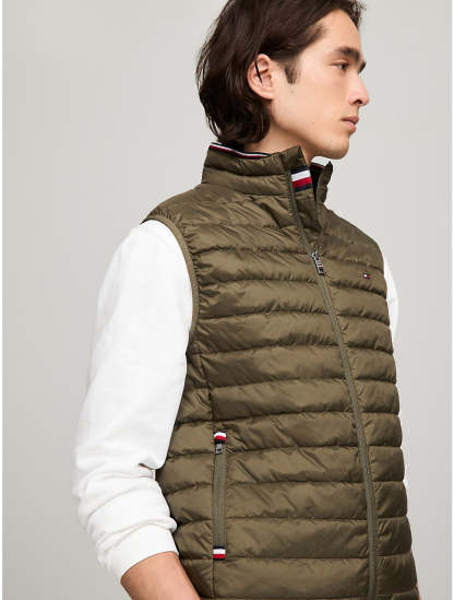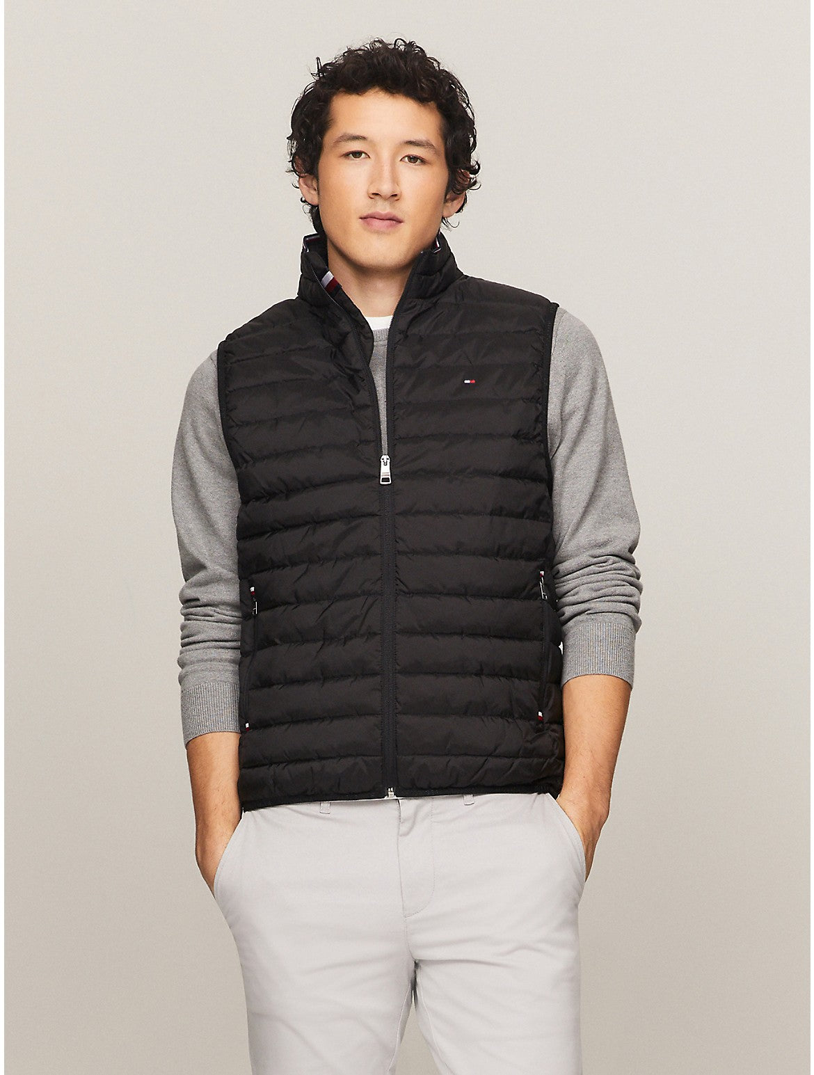 Tommy Hilfiger men's vest. Ideal for travel, this puffer vest folds down to a fraction of its size. Cut from recycled fabric and strategically insulated, it's ready for whatever the weather report is dishing out. Material - Shell - 100% Recycled Polyester Fill - 100% Polyester Fill - Shell - 100% Recycled Polyester Fill - 100% Recycled Polyester Depending On Timing Of Manufacturing.