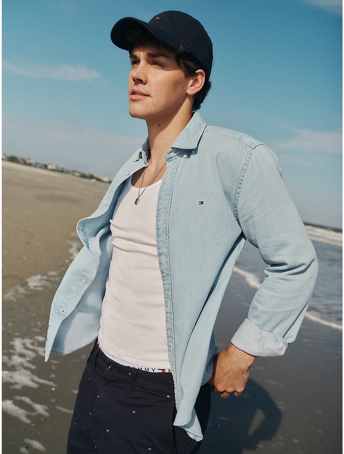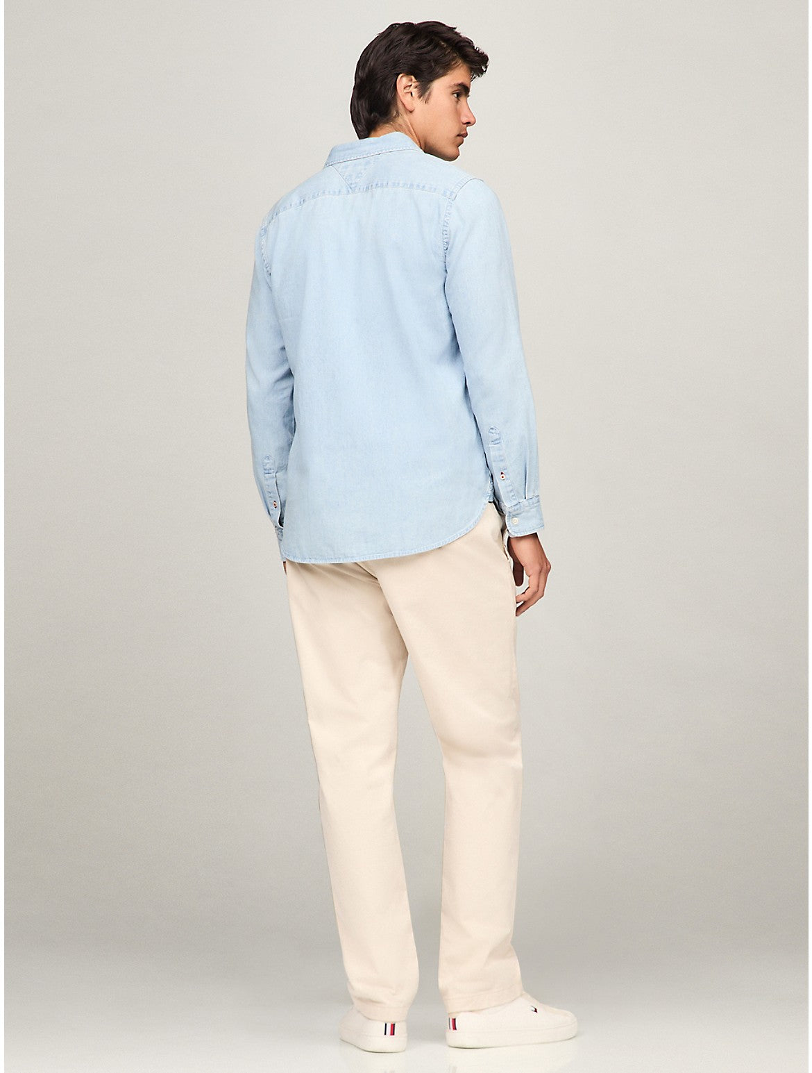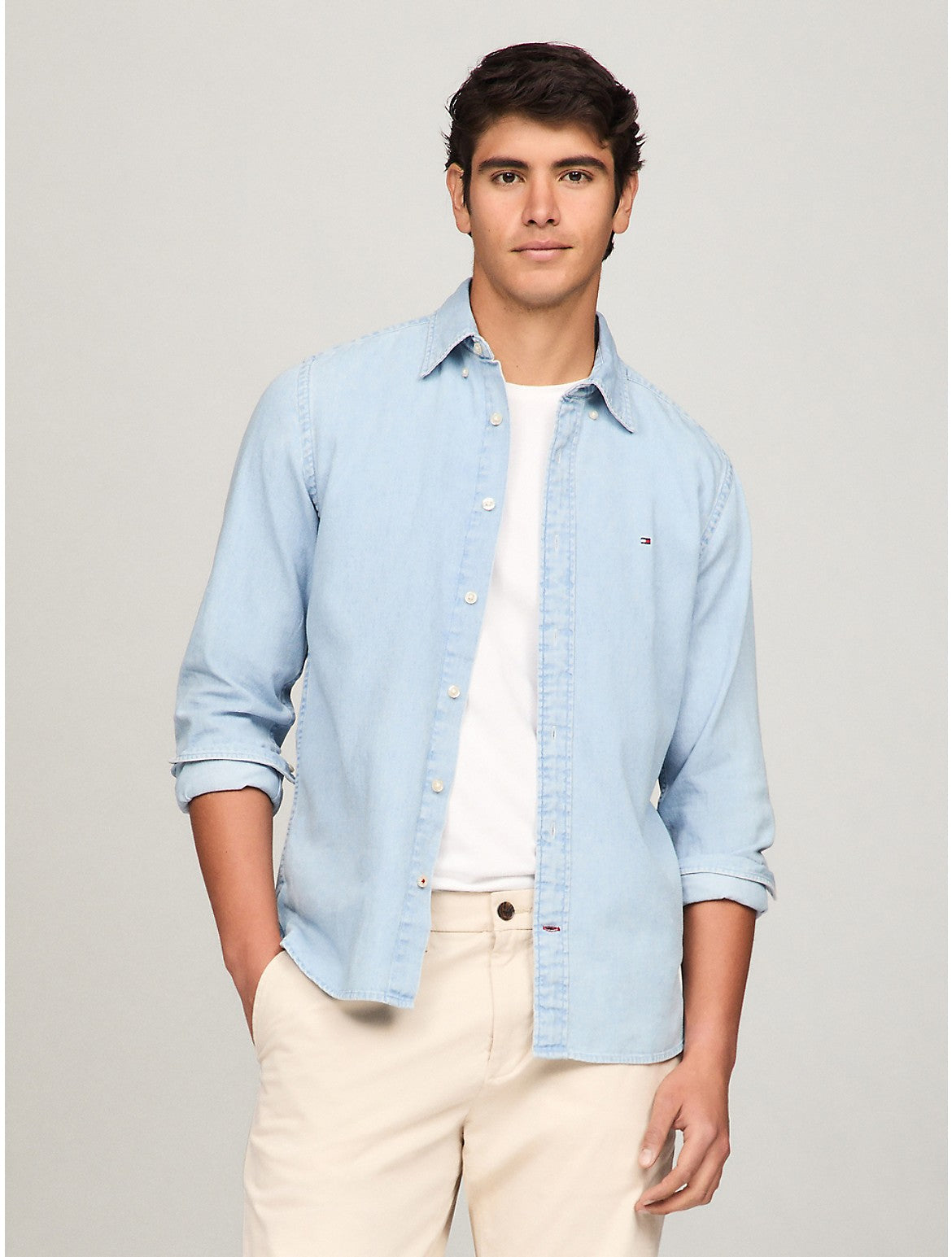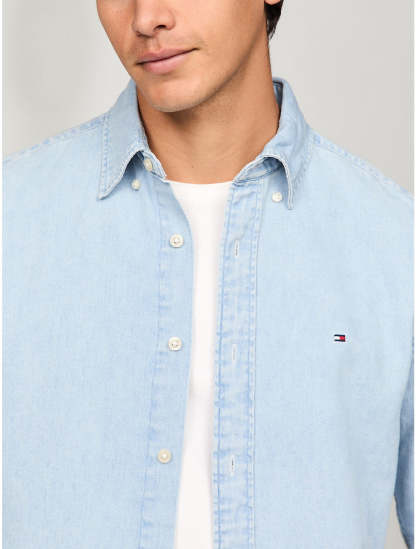 Tommy Hilfiger men's shirt. Switch up the textures in your wardrobe rotation with this classic denim shirt. Material - 100% Better Cotton Initiative.