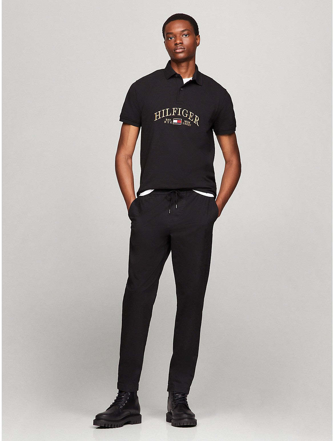 Tommy Hilfiger men's polo. What we do best. Our classic polo is made with a premium pique weave that gives it a balance of crisp structure plus a soft feel. Its stretch cotton construction lends it a lightweight flexibility that's smooth and comfortable for all-day wear. Material - 100% Cotton.