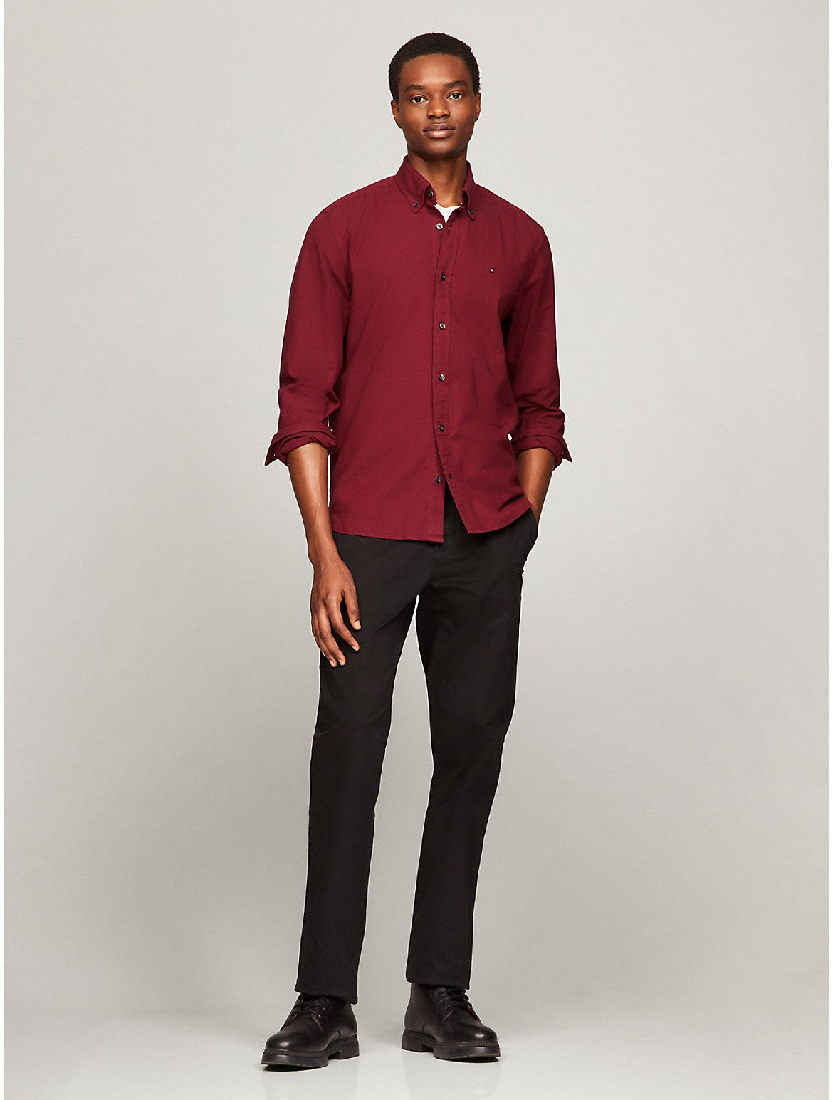 Tommy Hilfiger men's shirt. Embrace classic, easy-going style with this Oxford shirt, distinguished by its easy fit and subtle Tommy Hilfiger branding. Material - 98% Organic Cotton, 2% Elastane.