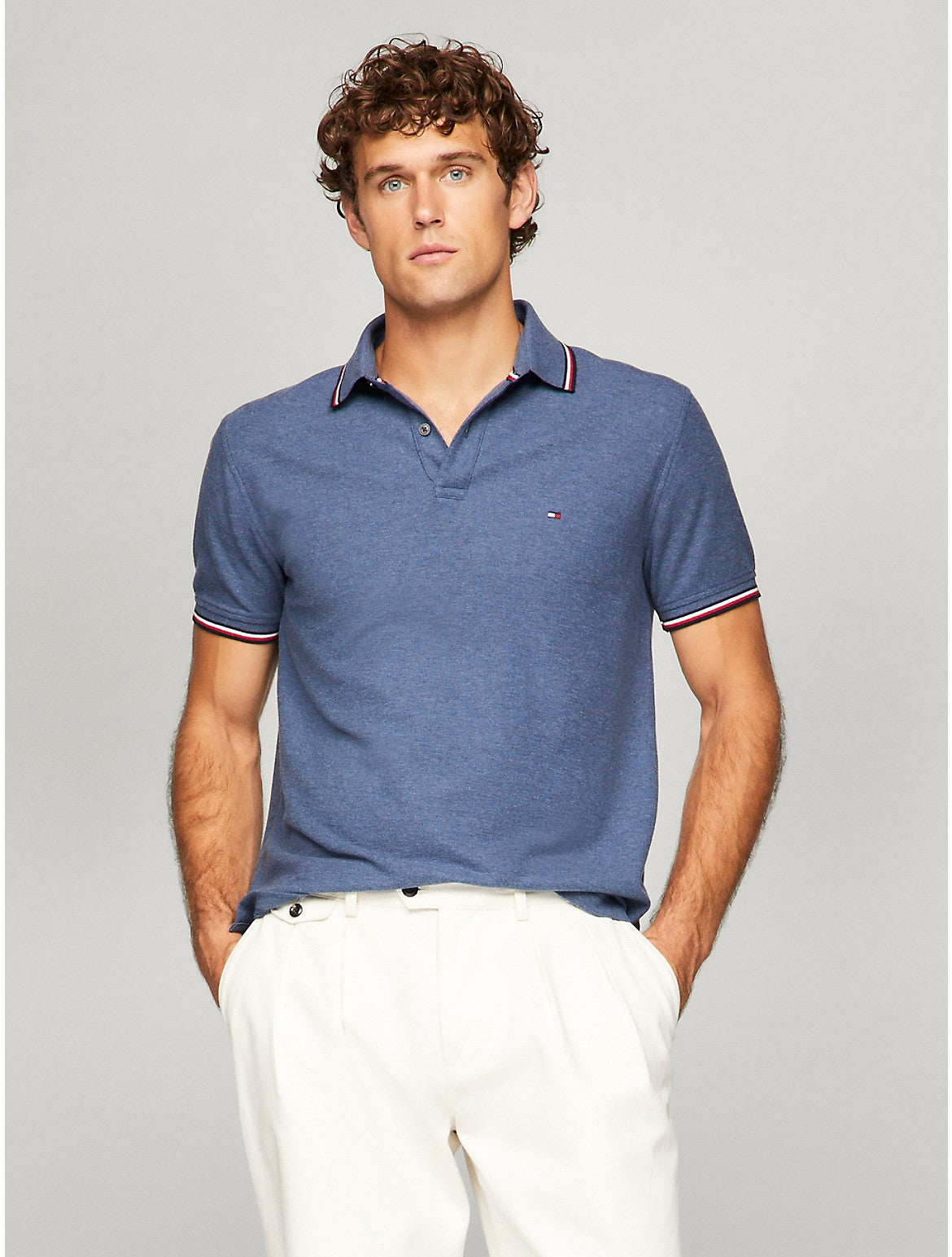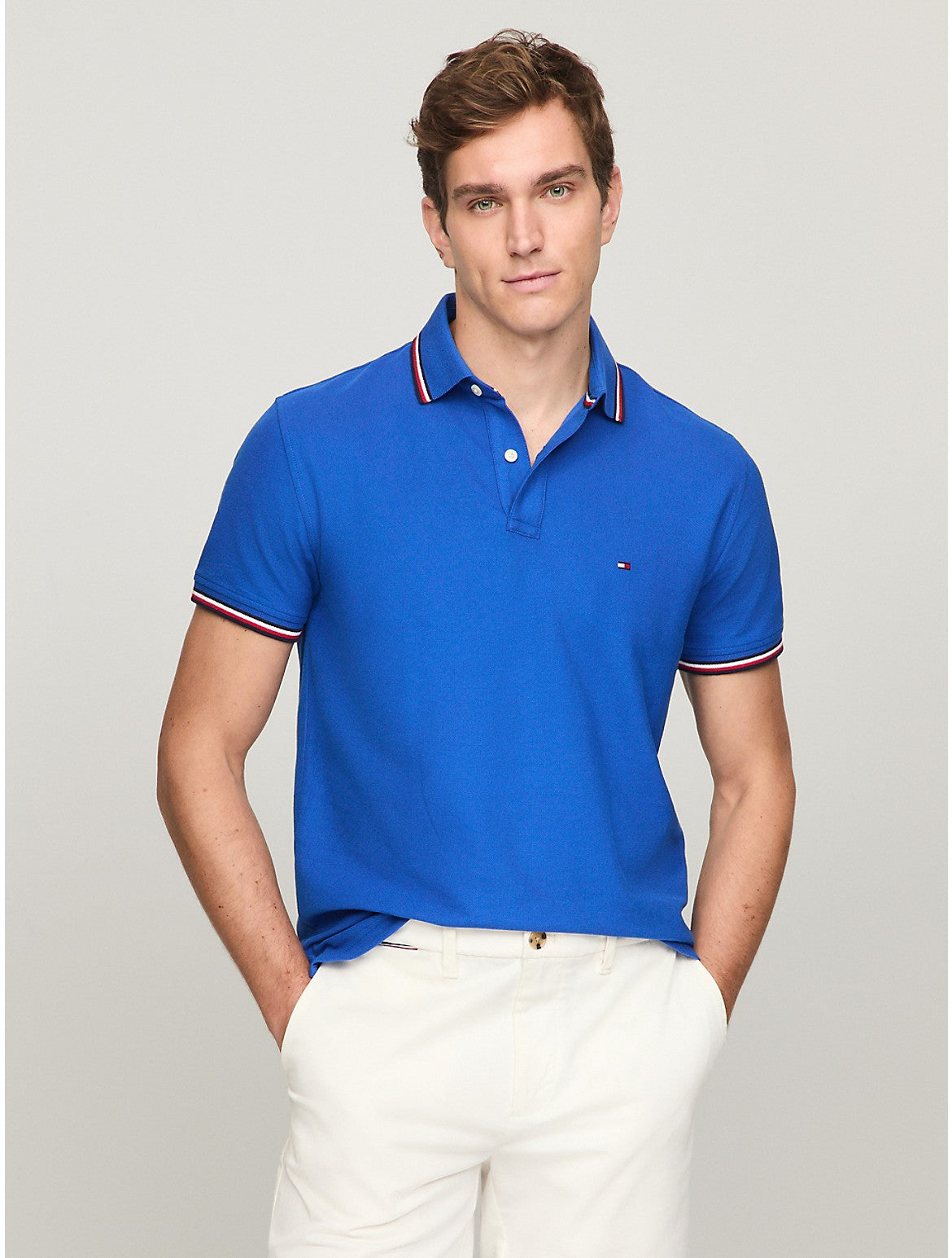 Tommy Hilfiger men's polo. A fresh spin on tradition, this regular-fit polo is made from quick-dry, wicking fabric with ultraviolet protection and features our signature stripe tipping at the cuffs and collar. Comfort? Check. Performance? Style? Check. Material - 60% Regenerative Cotton, 40% Polyester Pes.