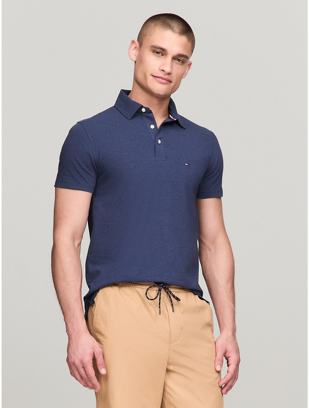 Tommy Hilfiger men's polo. What we do best, the classic polo in premium cotton jersey, cut in a trim, flattering fit. Material - 95% Regenerative Cotton.