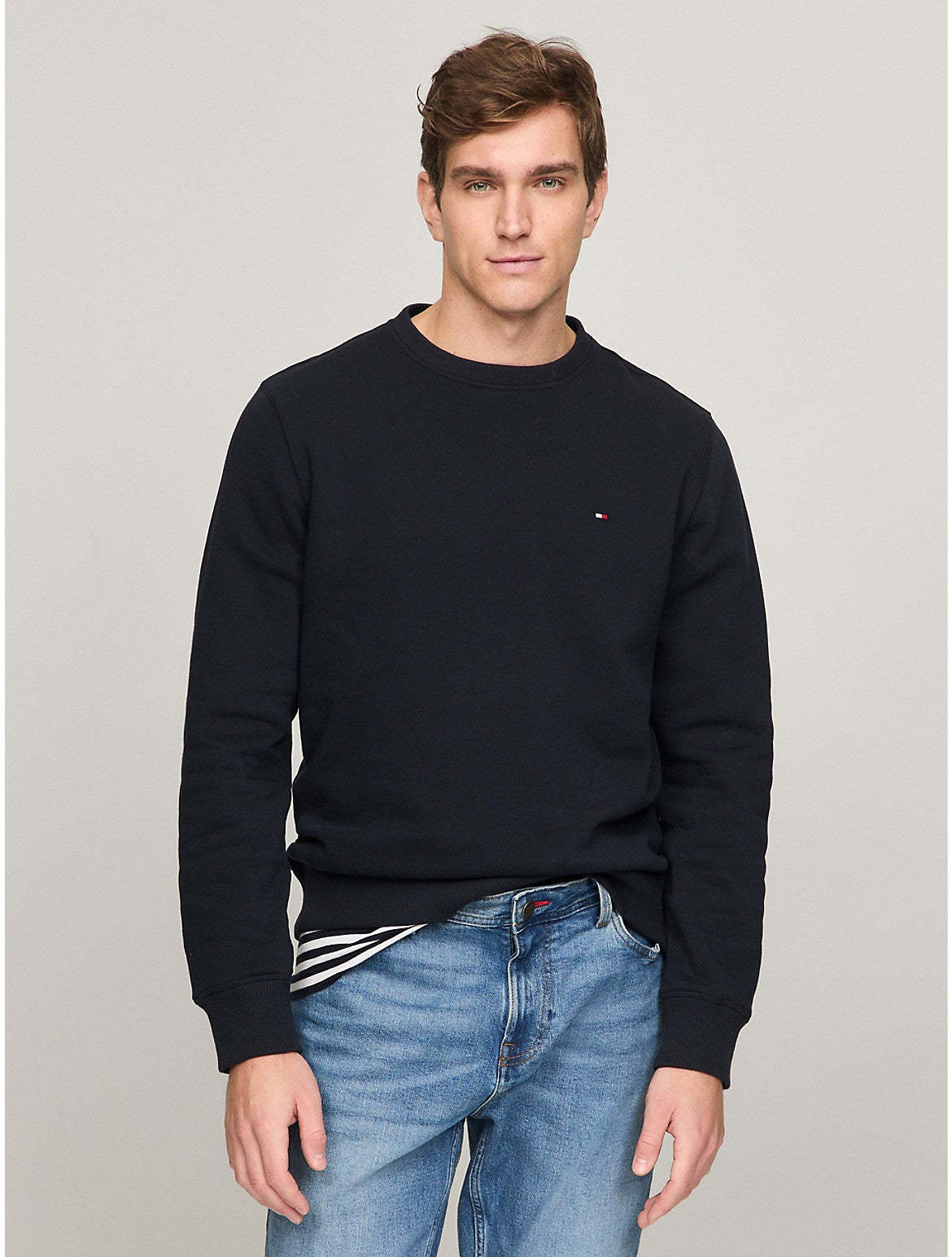 Tommy Hilfiger men's sweatshirt. Revive your casual looks with this fleece sweatshirt, cut to a classic regular fit and finished with subtle Tommy embroidery. Material - 72% Cotton, 28% Polyester.