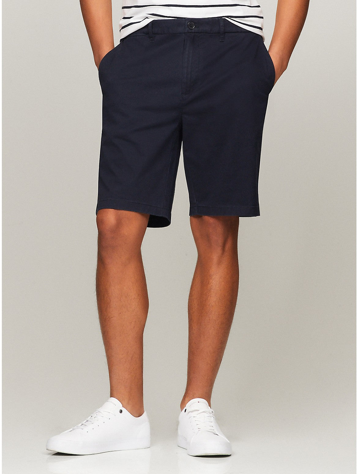 Tommy Hilfiger men's short. Made from premium cotton blended with THFlex fibers for added stretch, these shorts were designed with comfort in mind. Even better? This pair is cut to a 9" length for a flattering fit. Material - 77% Cotton.