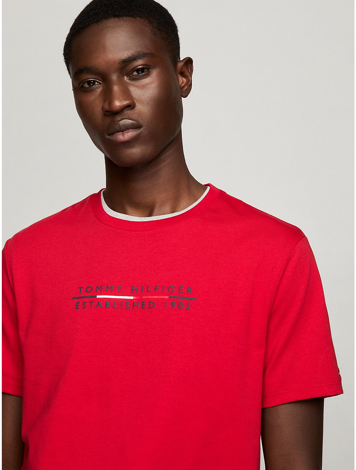 Tommy Hilfiger men's T-shirt. Made from lightweight cotton jersey, known for its breathability and stretch, our comfortable crewneck tee is cut in an easy fit and finished with our Tommy Triumph graphic. Material - 100% Regenerative Cotton.