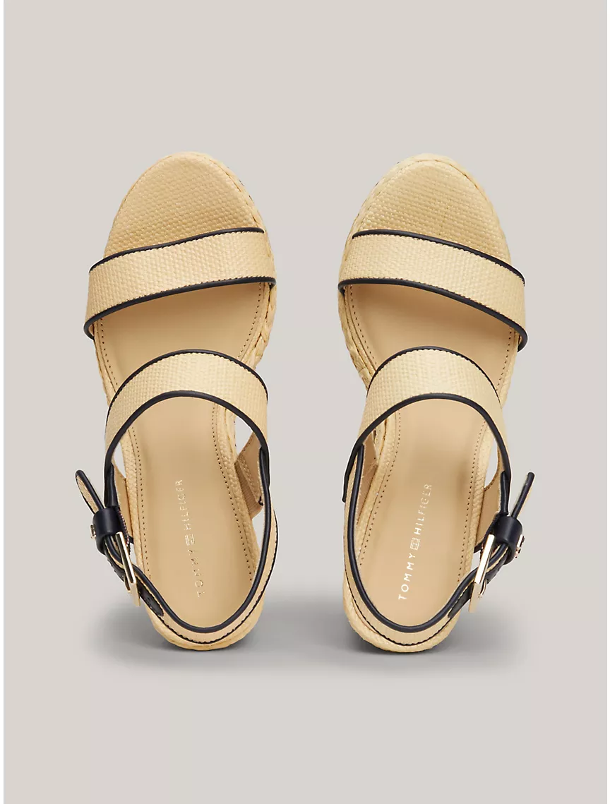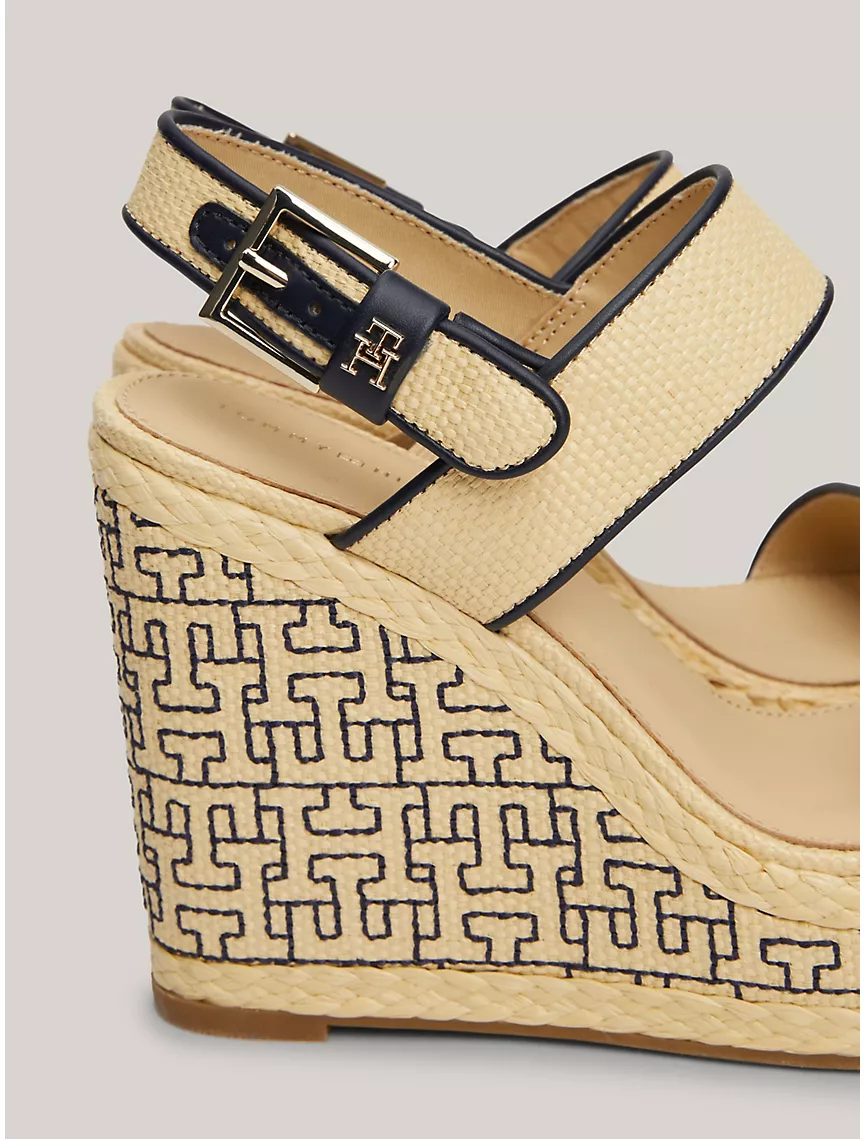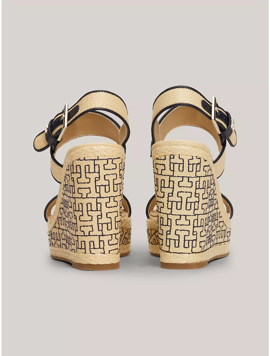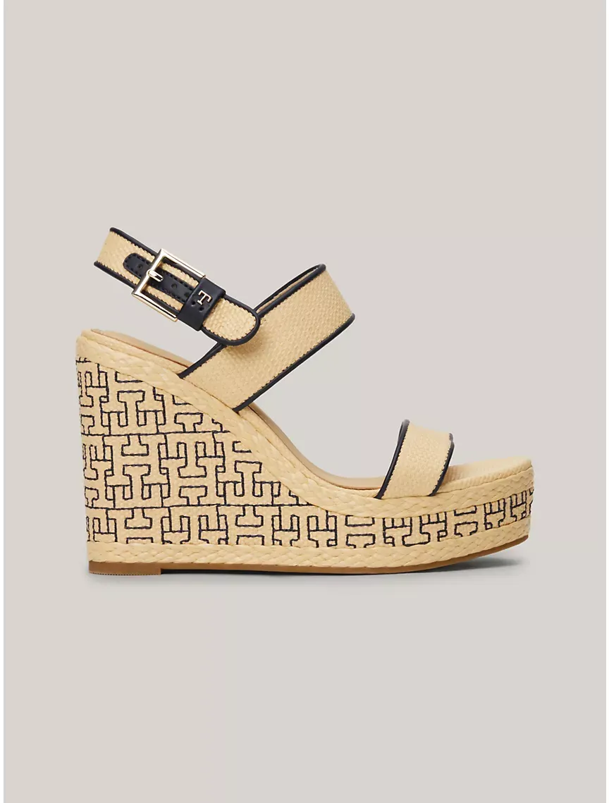 TH Logo Raffia Wedge Platform Sandal