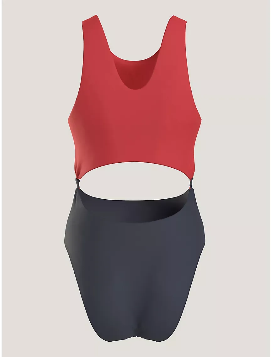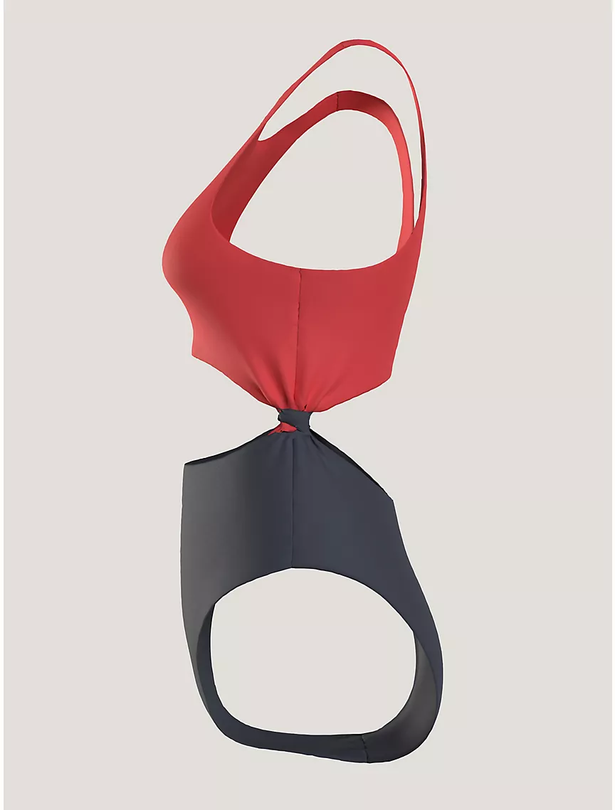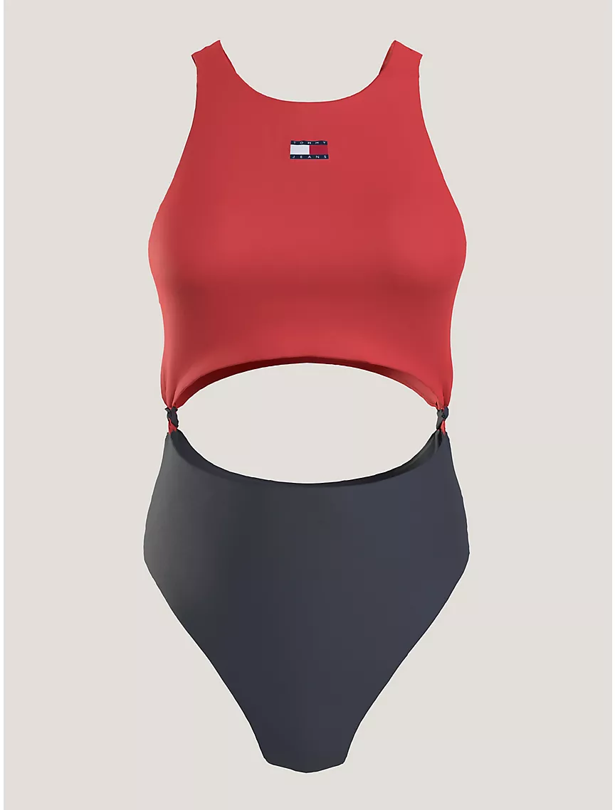 - Round neckline, cutout details at front and back, knot details at side, tottgmmy Jeans badge at chest.