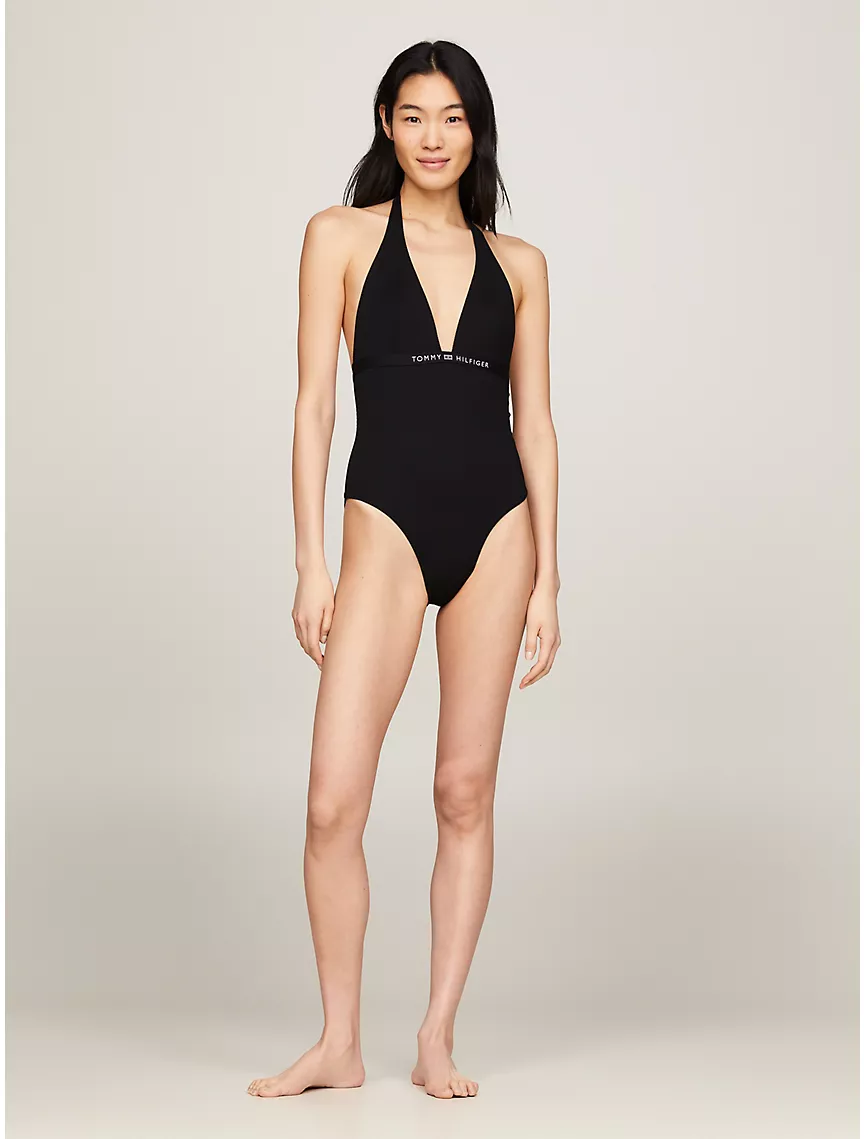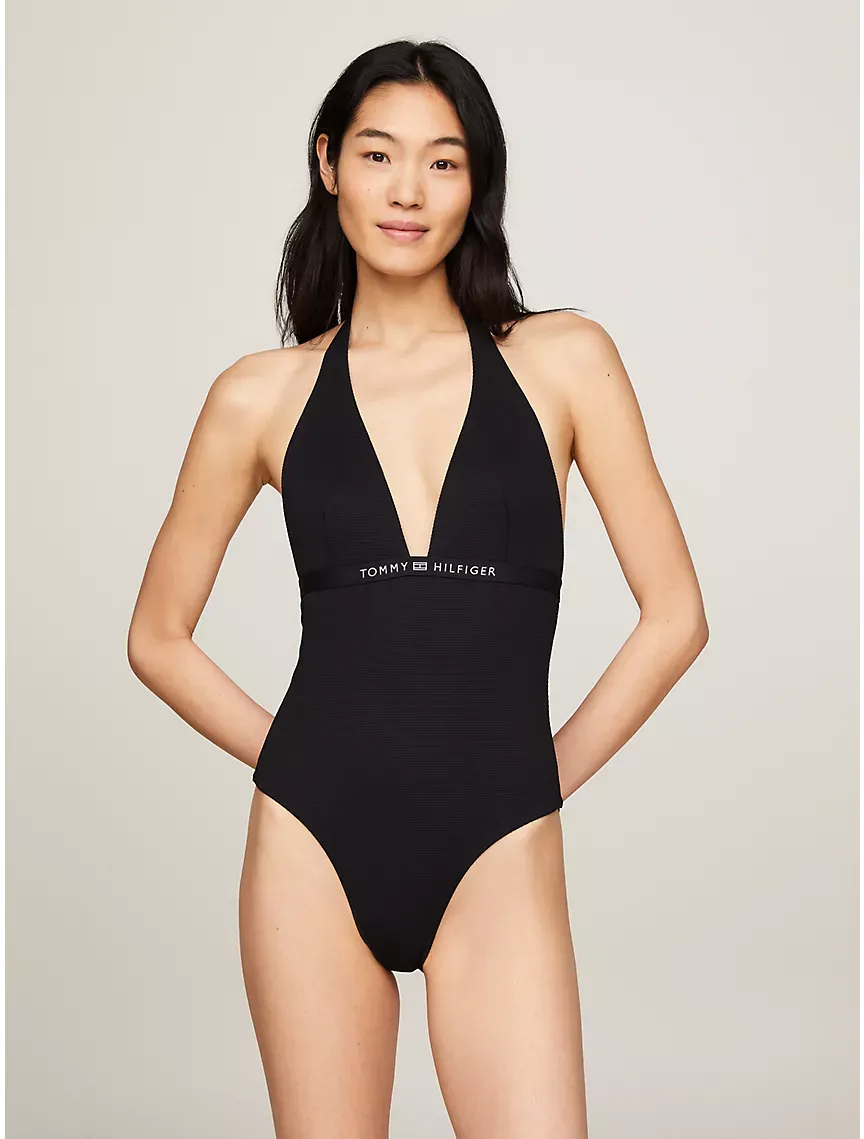 Tonal Logo Halterneck One-Piece Swimsuit