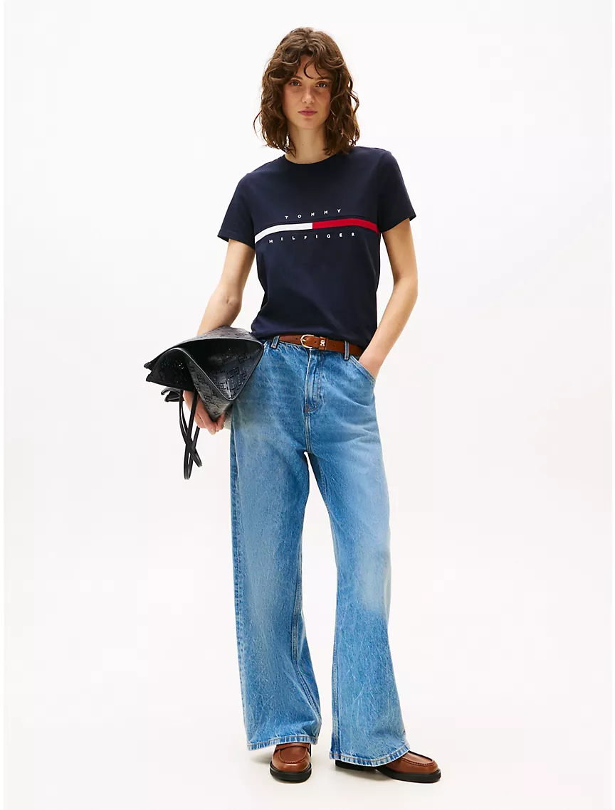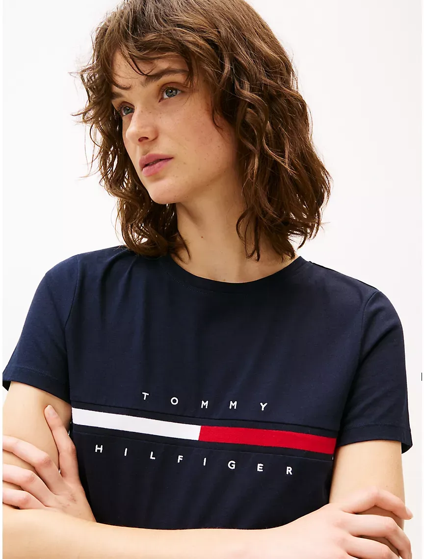 Embroidered Flag Stripe Logo T-Shirt