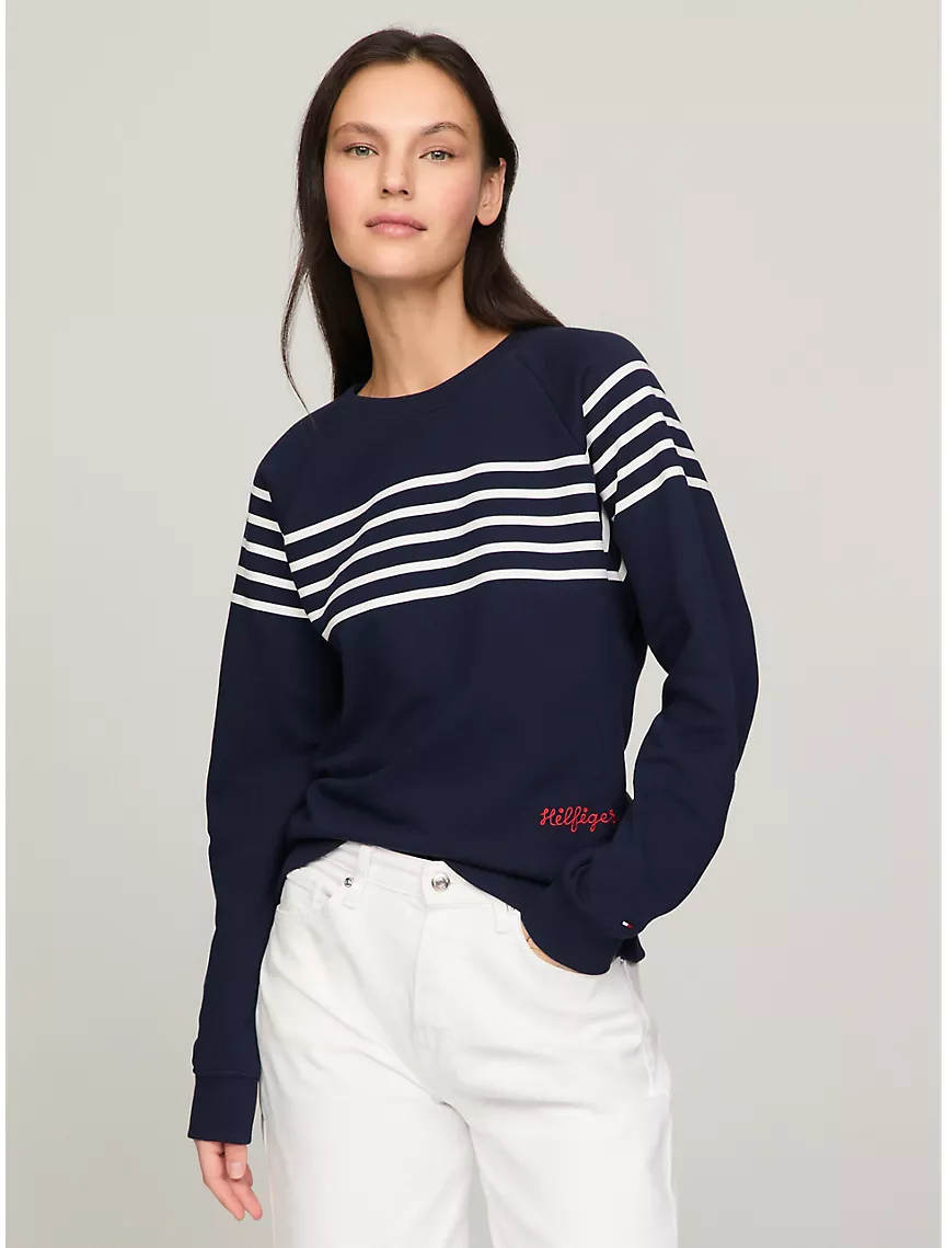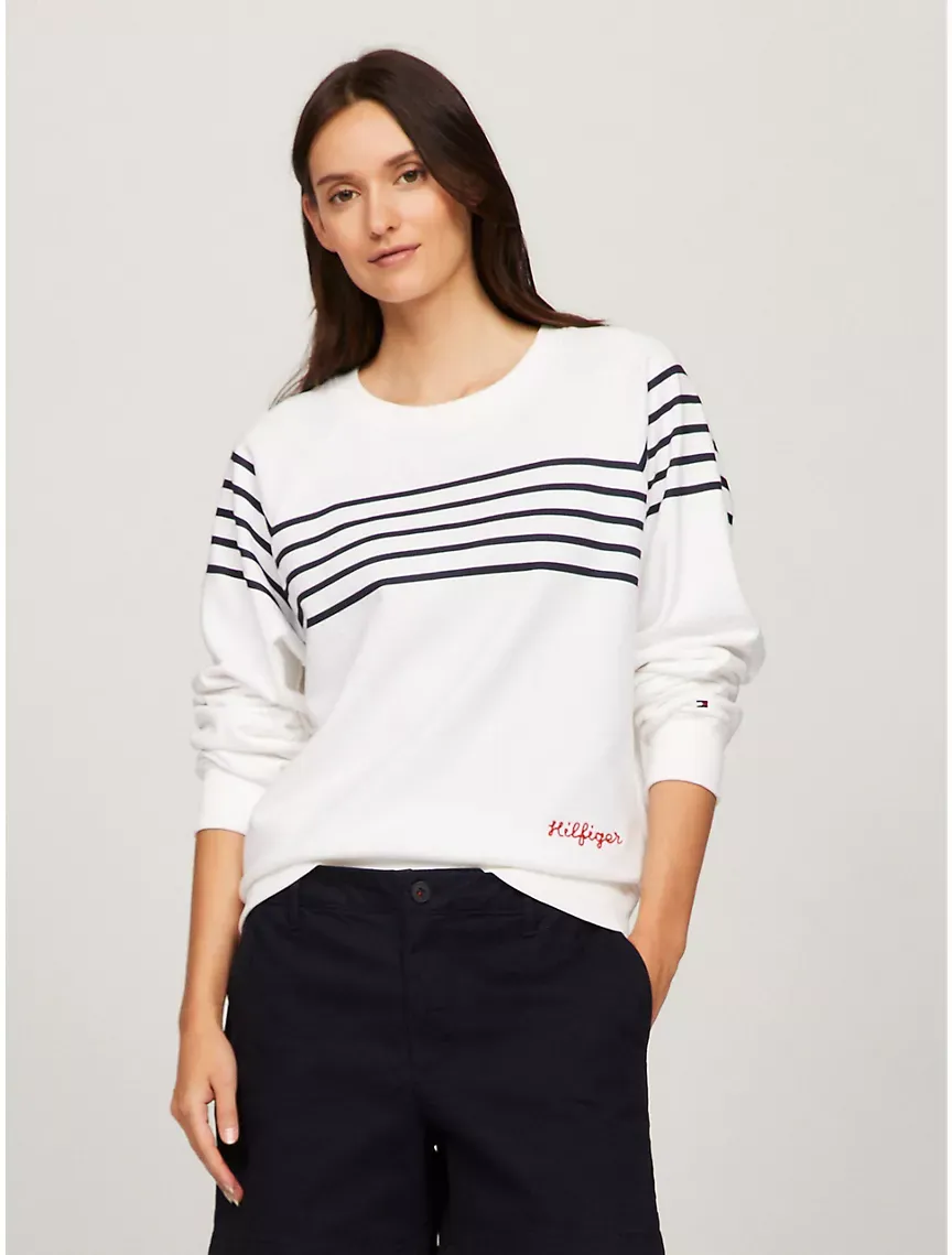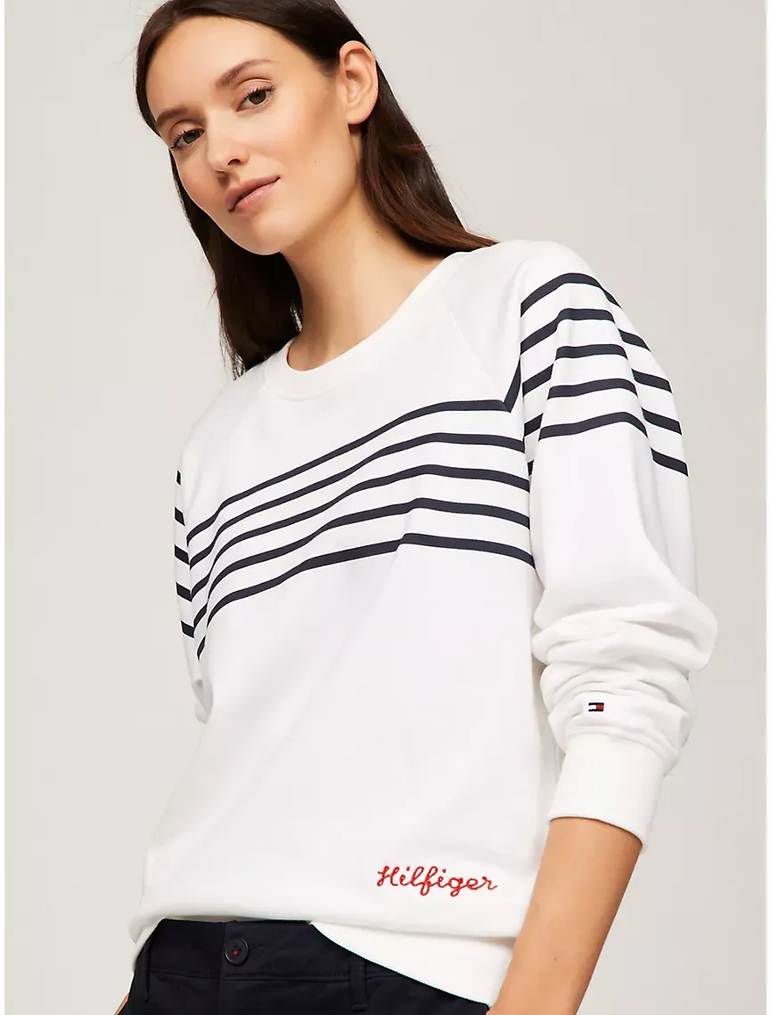 Embroidered Logo Stripe Sweatshirt