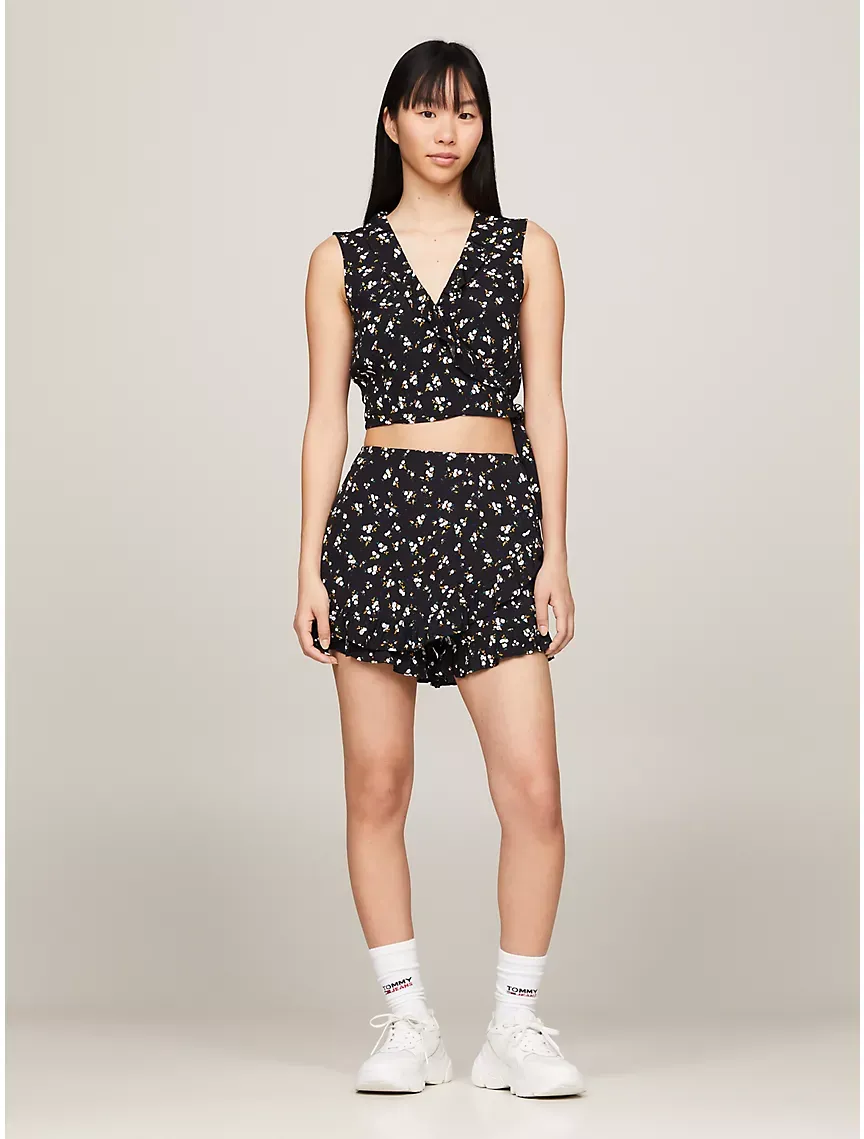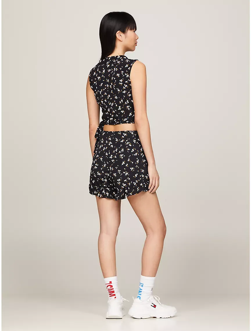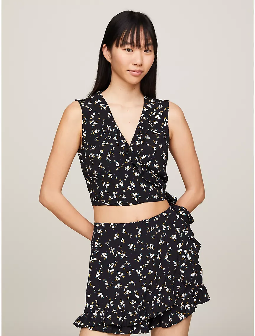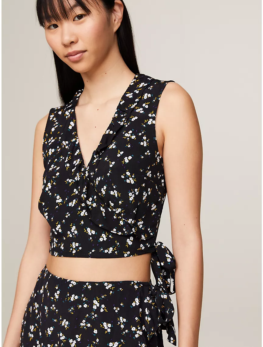 Floral Print Sleeveless Wrap Crop Top