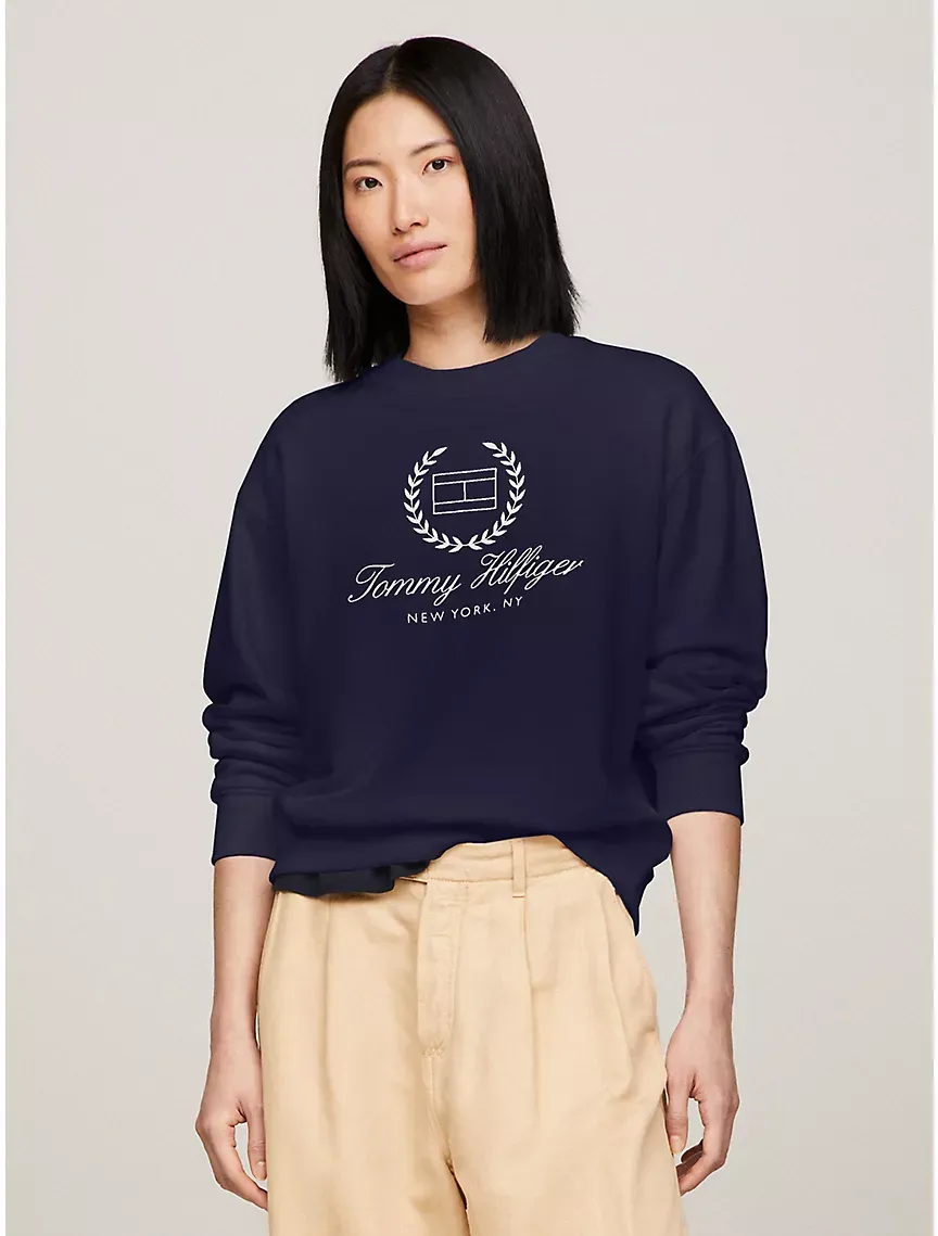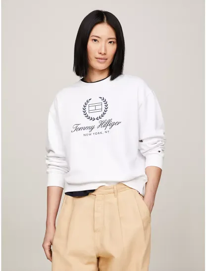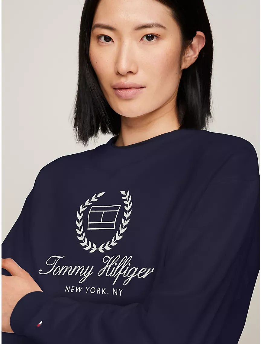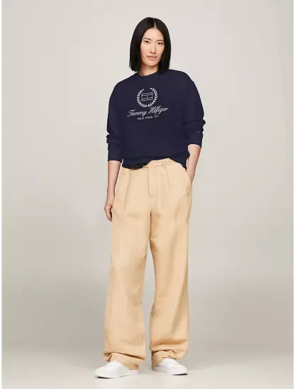 - Crewneck, rib-knit collar, cuffs and hem, tottgmmy hilttgfiger logo at the chest, dropped shoulder.