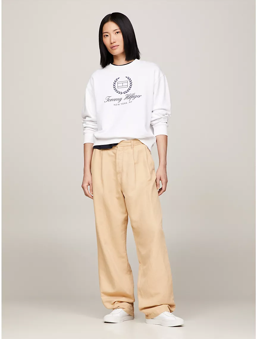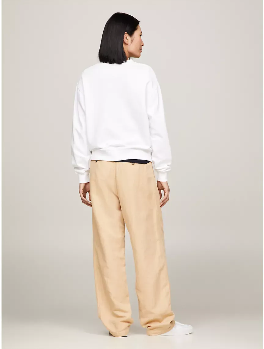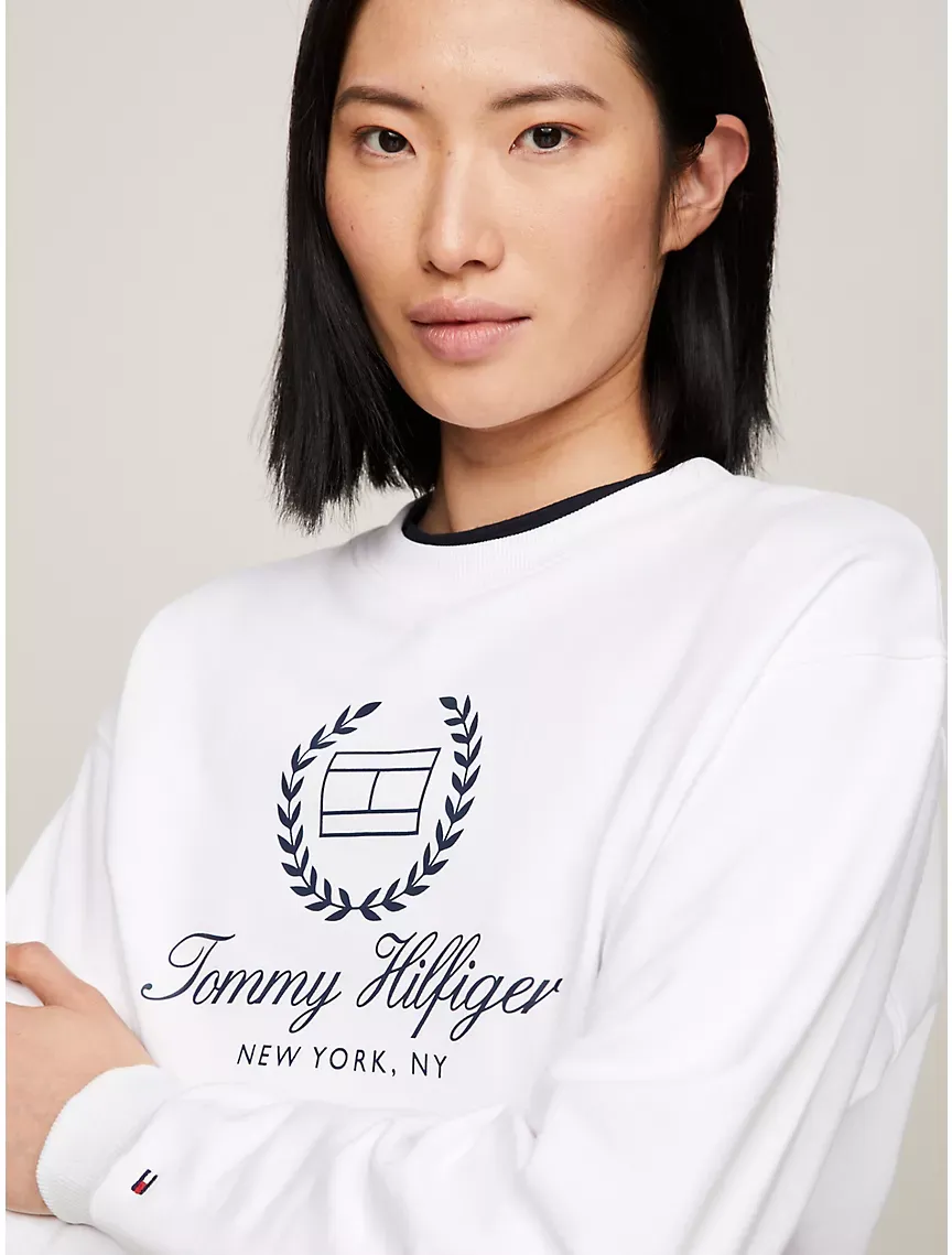 - Crewneck, rib-knit collar, cuffs and hem, tottgmmy hilttgfiger logo at the chest, dropped shoulder.