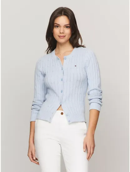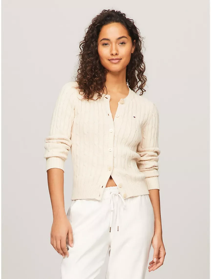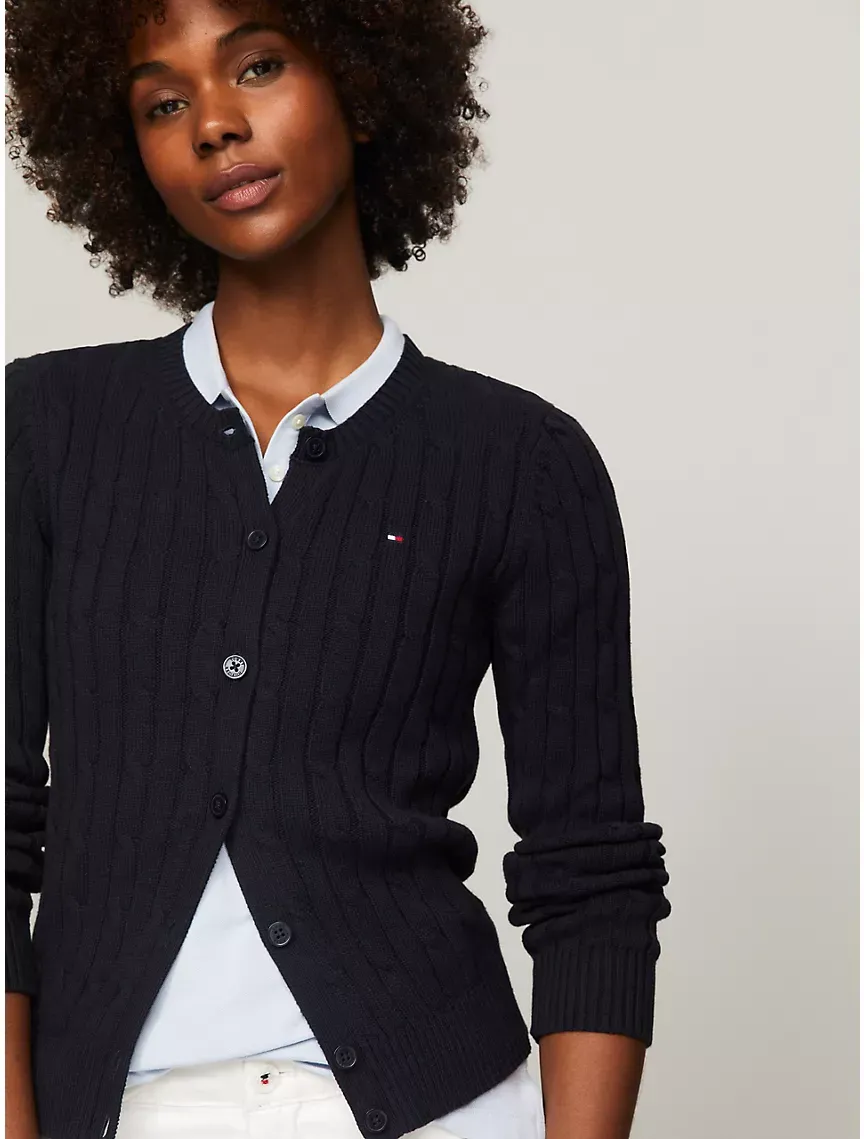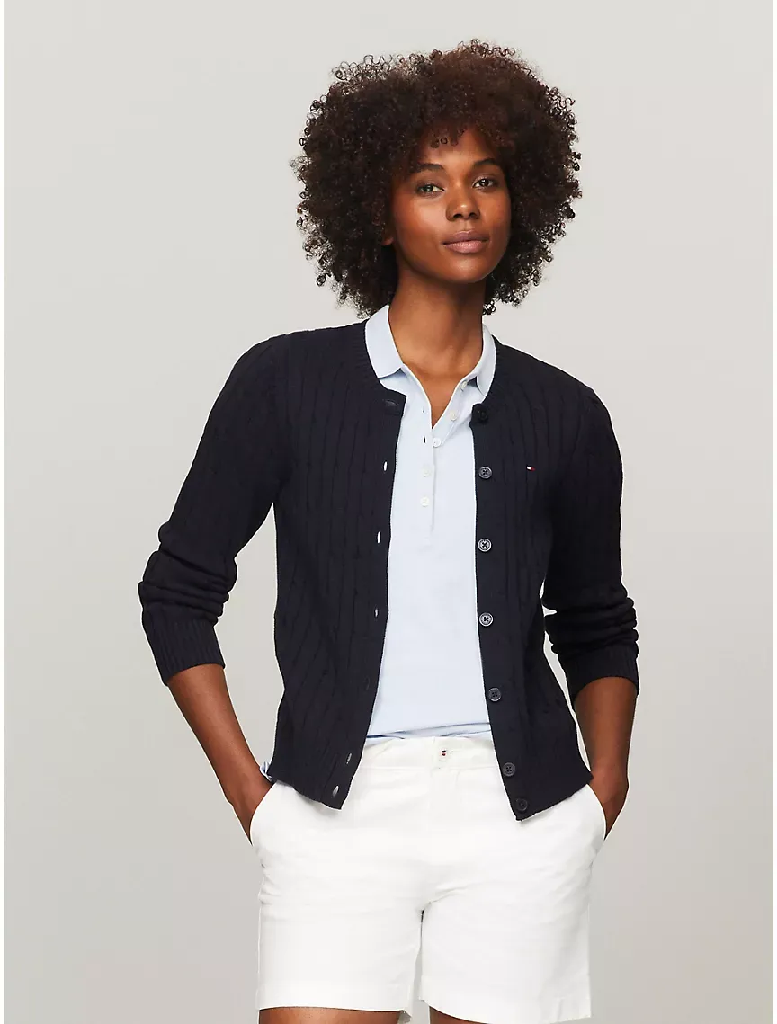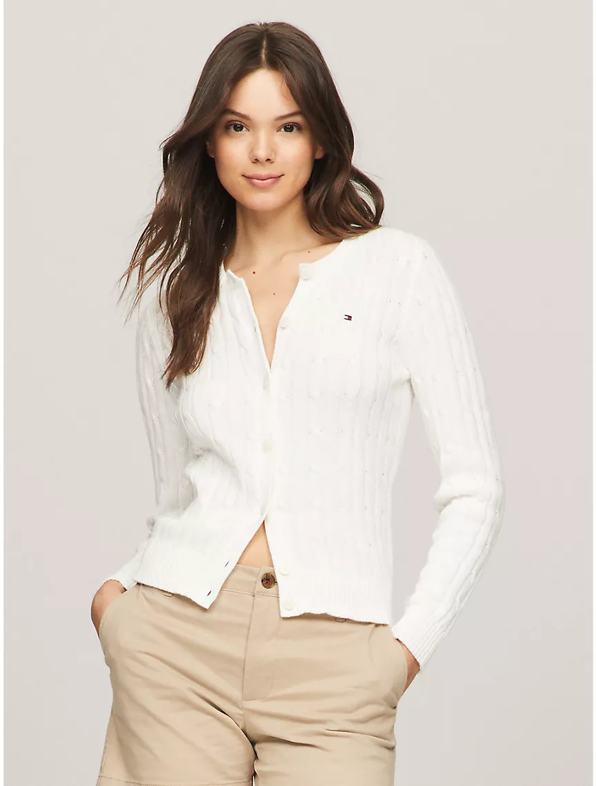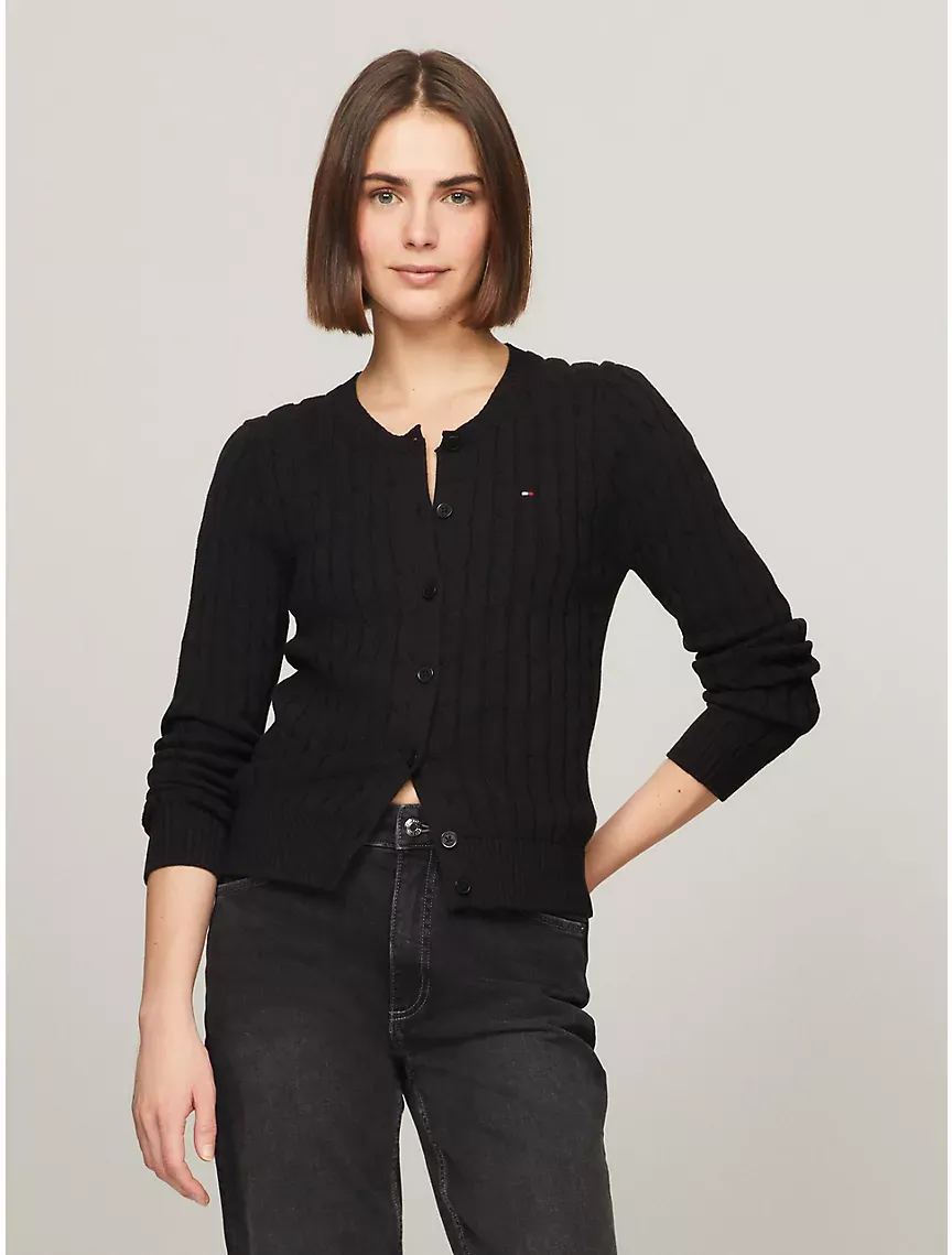 Long-Sleeve Solid Cable Knit Cardigan