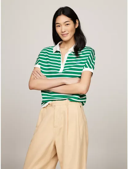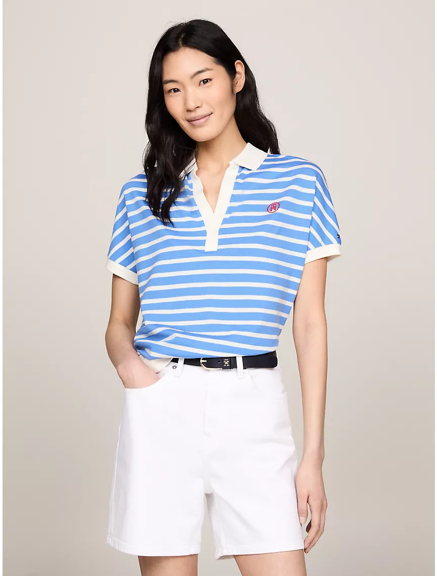 Relaxed Fit Stripe Open Placket Polo