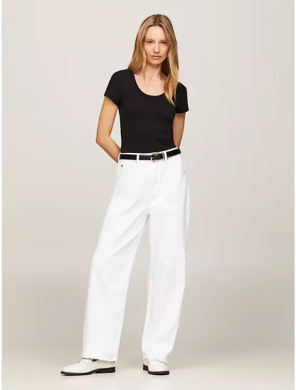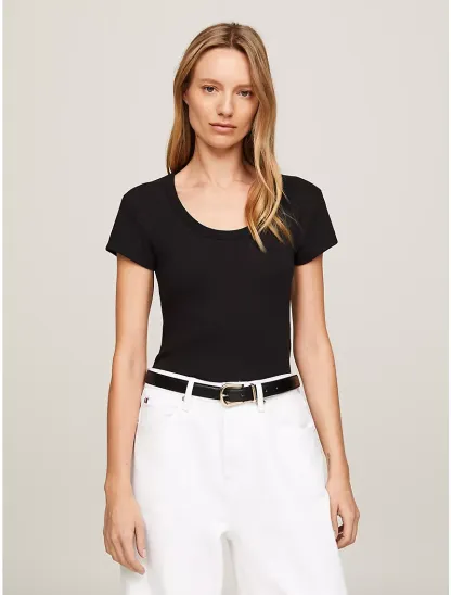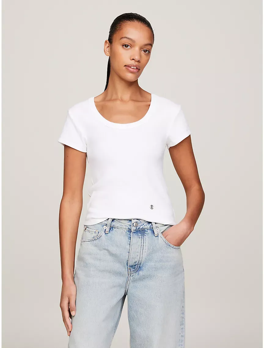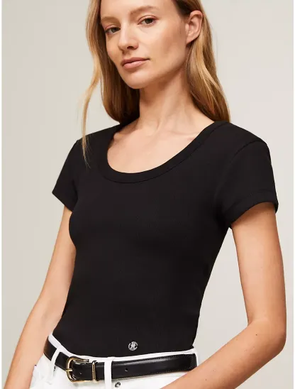 Slim Fit Ribbed Scoop Neck T-Shirt